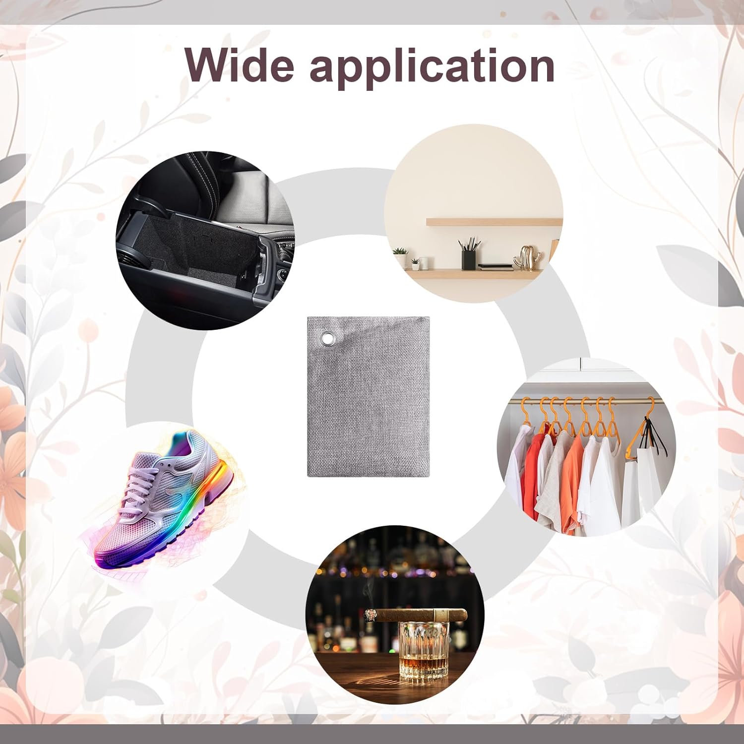 - Double Design: the breathable fabric design of linen-like cloth bag and leakproof non-woven fabric can prevent charcoal dispersion and accelerate air contact, filtering odors without compromising airflow, ensuring continuous and potent odor elimination for cigarette smoke odor absorber; All natural charcoal bags odor absorber with scent-free is a nice air deodorizer for people and pet, great for dog smell eliminator for home and cat litter odor eliminator