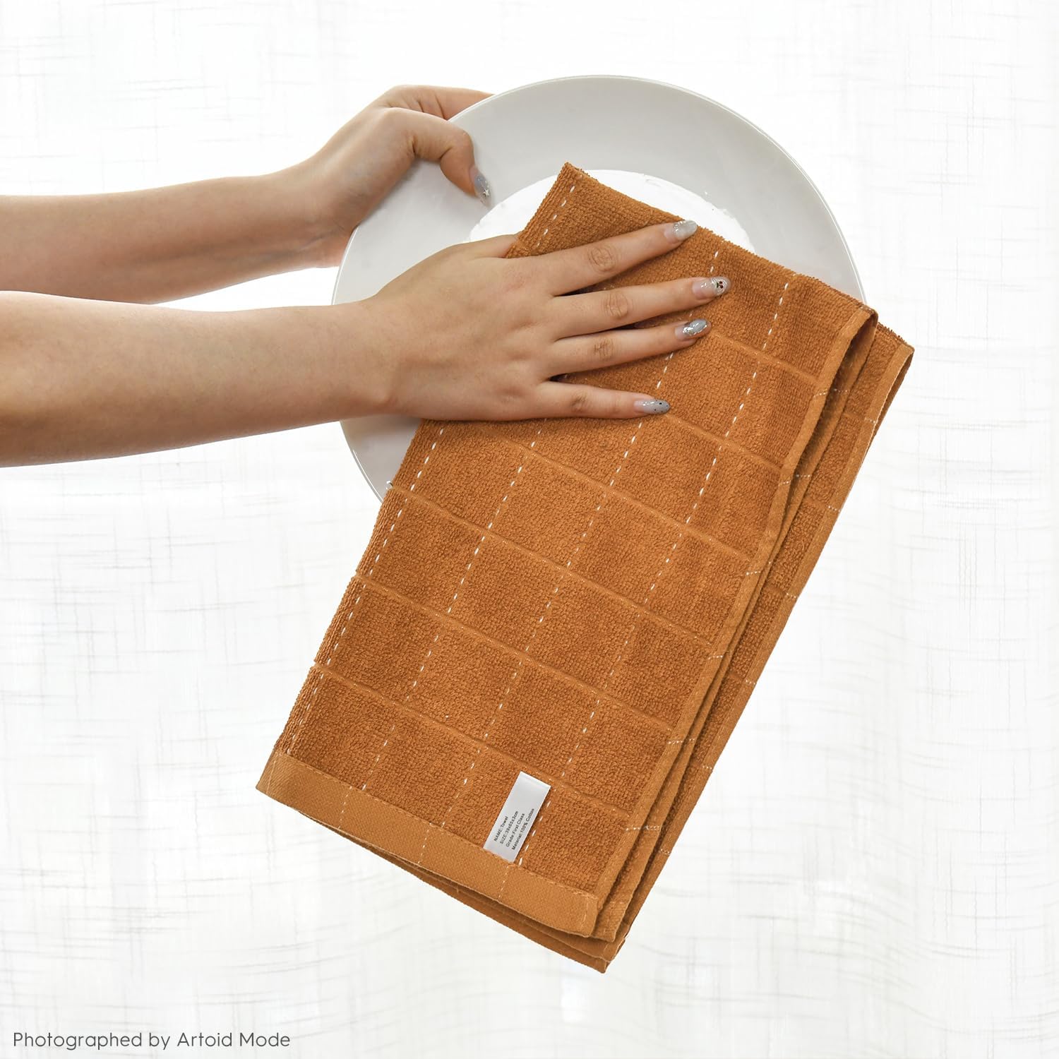 Artoid Mode Checkered Designed Cotton Beige Caramel Terry Kitchen Dish Towels, 15x25 Inch Soft Absorbent Quick Drying Cleaning Tea Towels Set of 4