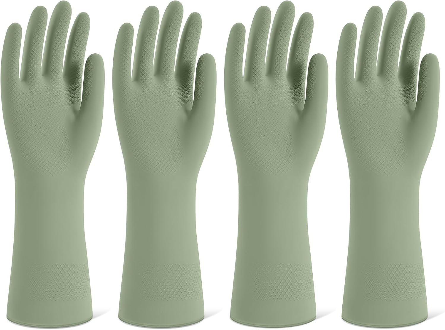 - Style Meets Function: This set includes 4 pairs of cleaning gloves in a single elegant color, perfect for daily use across multiple cleaning tasks. Designed for durability and comfort, these reusable rubber gloves help streamline your routine while maintaining a clean, cohesive look throughout your home.