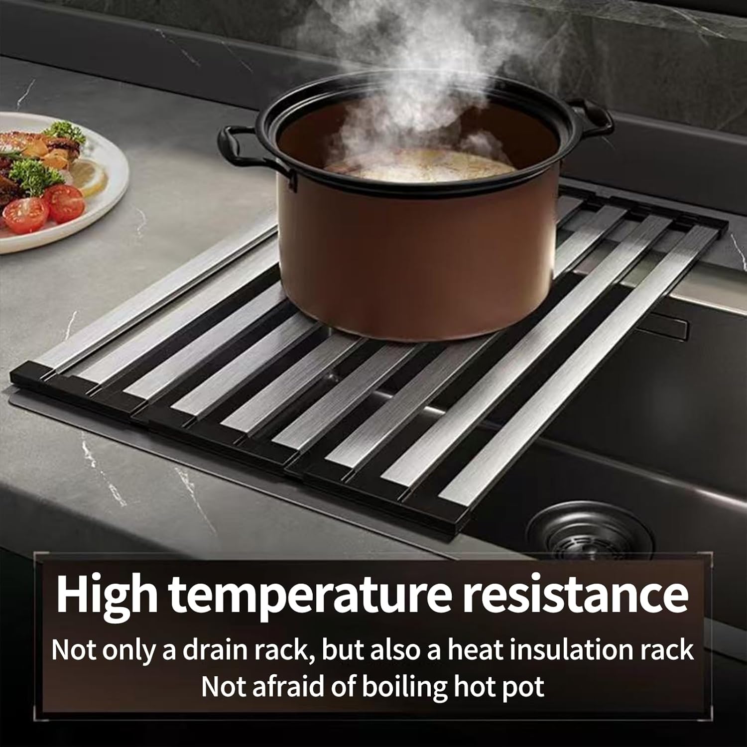 Foldable Dish Drying Rack, Over The Sink Dish Drying Rack ,Dish Drying mat,Dish Drying mats for Kitchen Counter,Stainless Steel Multifunctional mat (19.69×12.8in)