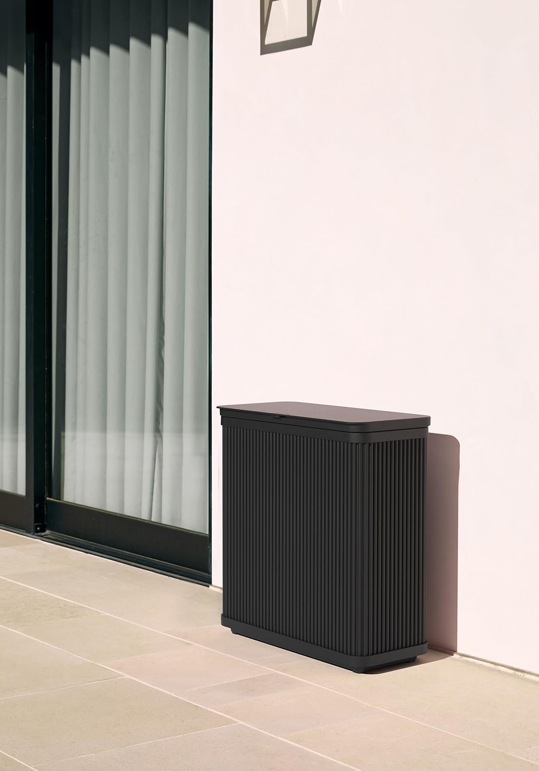 - Size and Capacity: 25”L x 11.75” W x 26.5” H – the Veradek Tambour trash can hold one 30 gallon bag or two 16-gallon bags at the same time