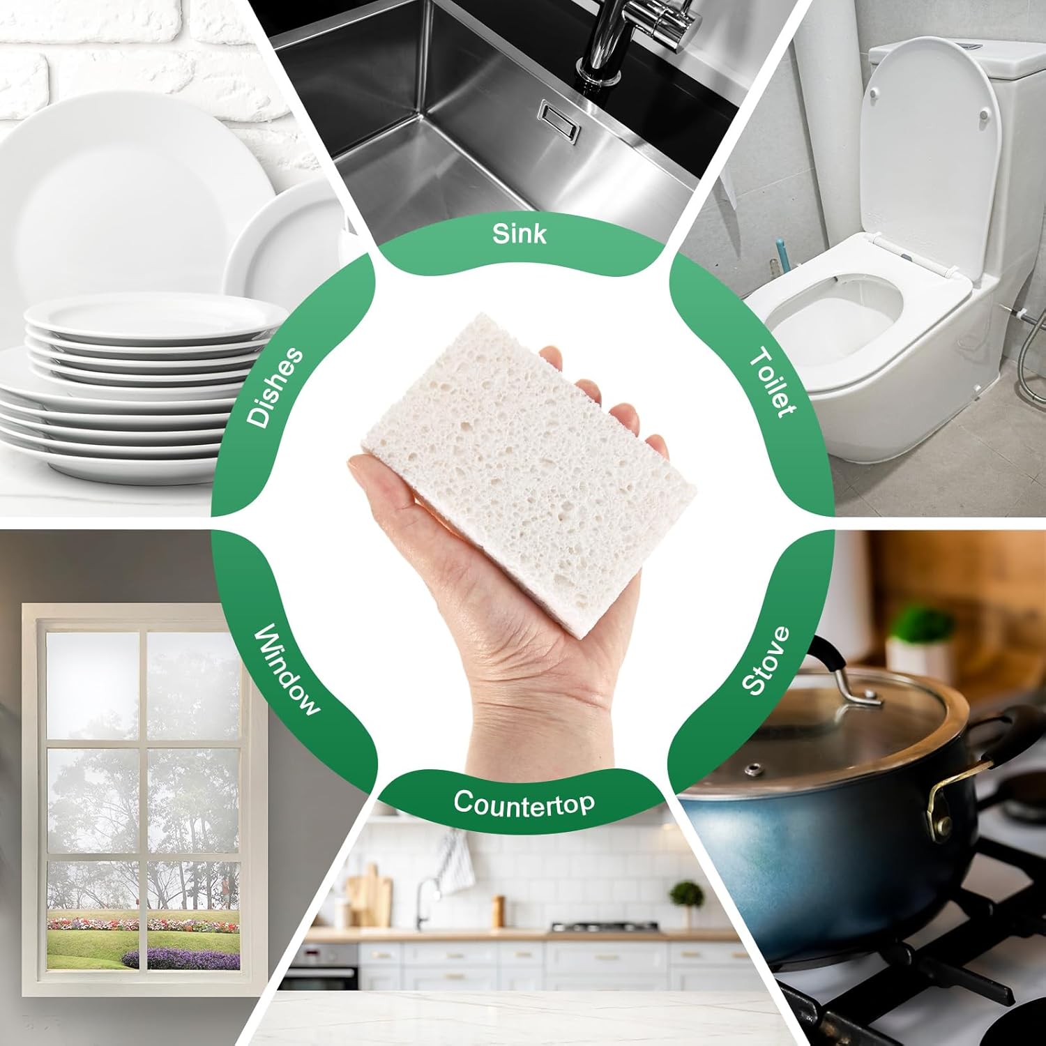 12-Pack Kitchen Sponges, Condense Eco Cellulose Non-Scratch Scrub Heavy Sponge for Kitchen/Household/Bathroom, Clean Tough Messes Dish Scrubber [White]