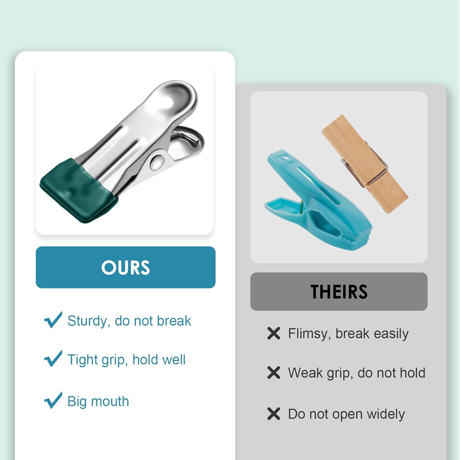 - Superior Grip for Windy Days: With a strong spring mechanism and gripping teeth, these heavy-duty clips hold your items firmly in place, even on windy days. Whether you're hanging heavy garments or lightweight fabrics, they ensure your clothes stay secure on the line.