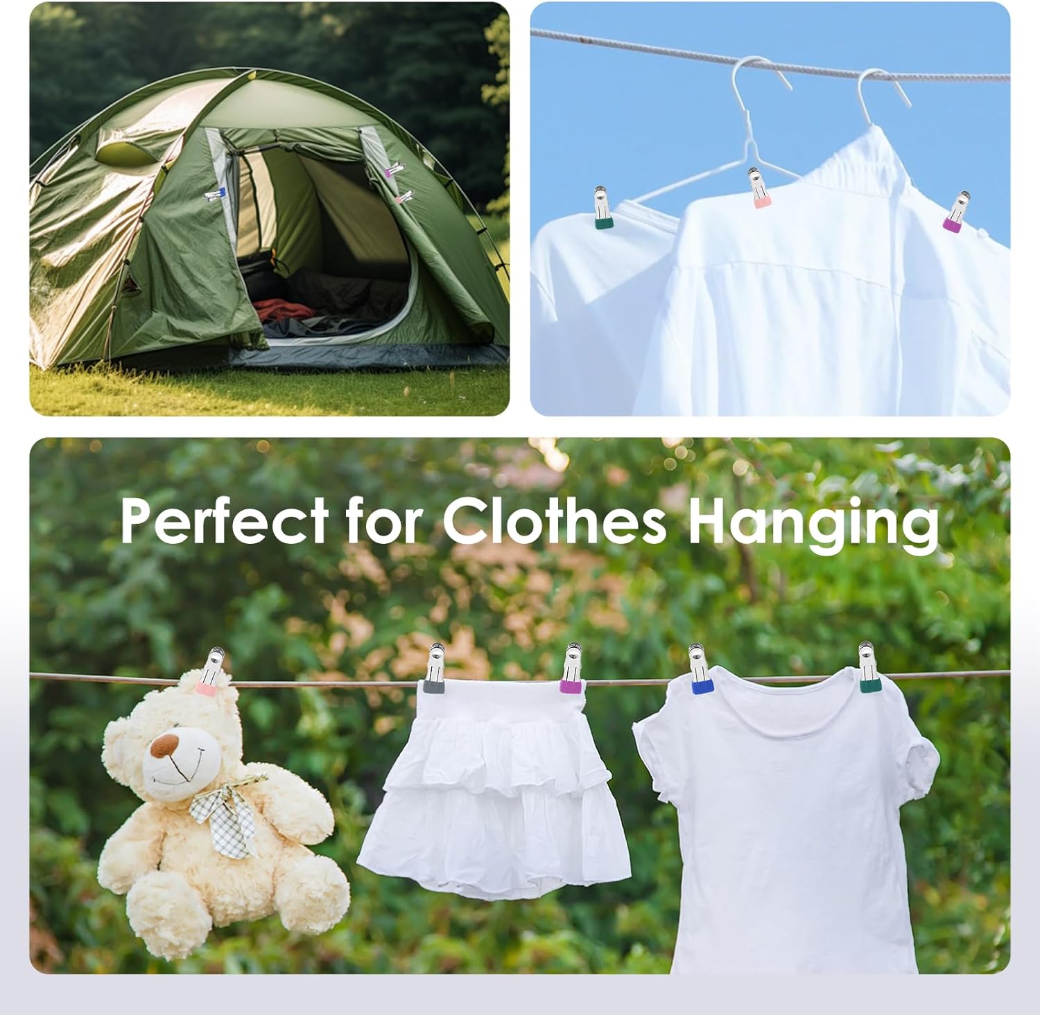 - Versatile & Multipurpose: These clips are not just for clothes! Use them as photo clips, chip bag clips, snack holders, or even office paper organizers. Perfect for the laundry room, kitchen, office, or while traveling, offering versatility for various daily tasks.
