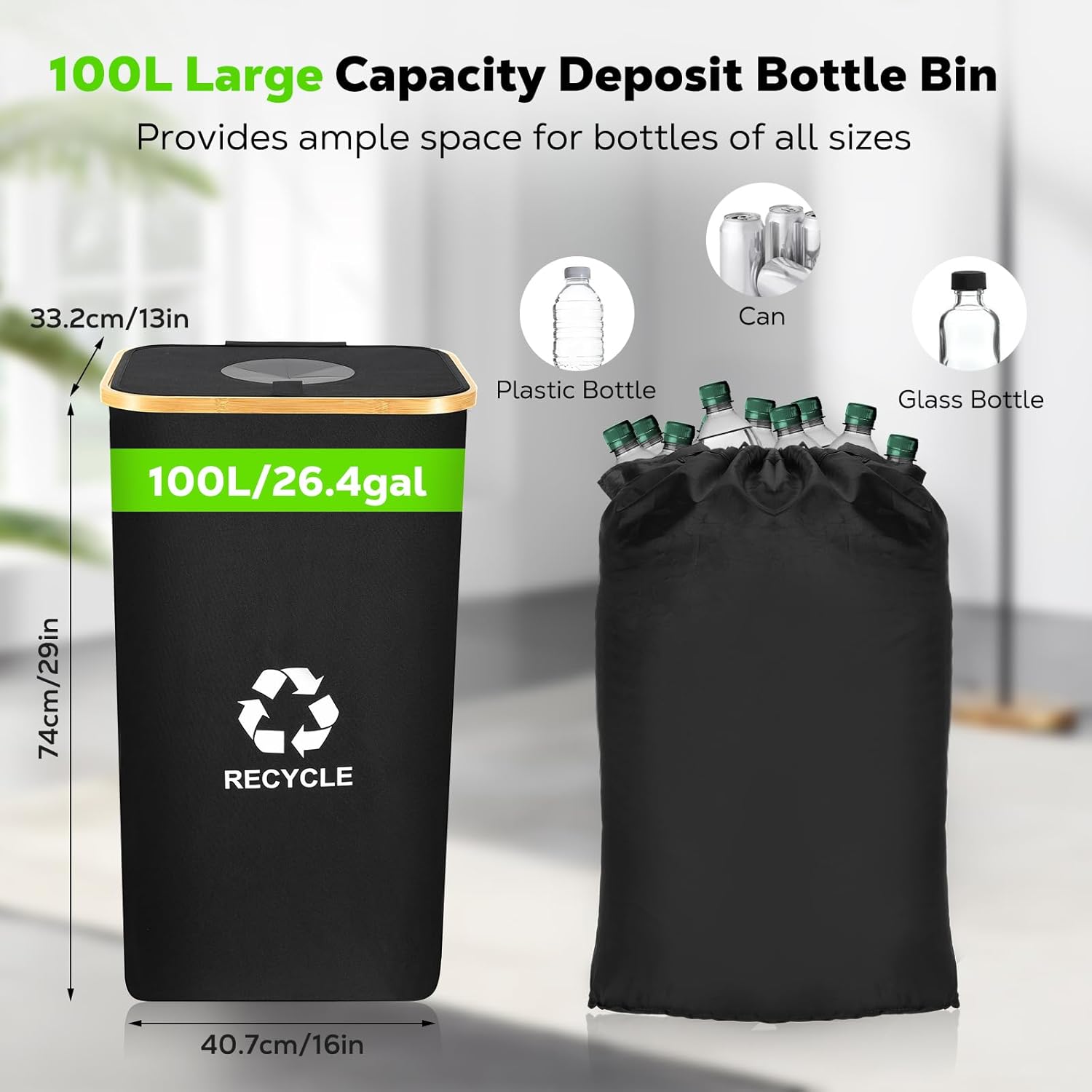 - 100L Capacity: Our deposit bottle collection box measures 40 x 32 x 75 cm and has a capacity of up to 100 liters. It can easily accommodate bottles, cans, and glass bottles of all sizes. With this deposit bottle collection box, your home is clutter-free and you can recycle your household more efficiently and environmentally friendly.