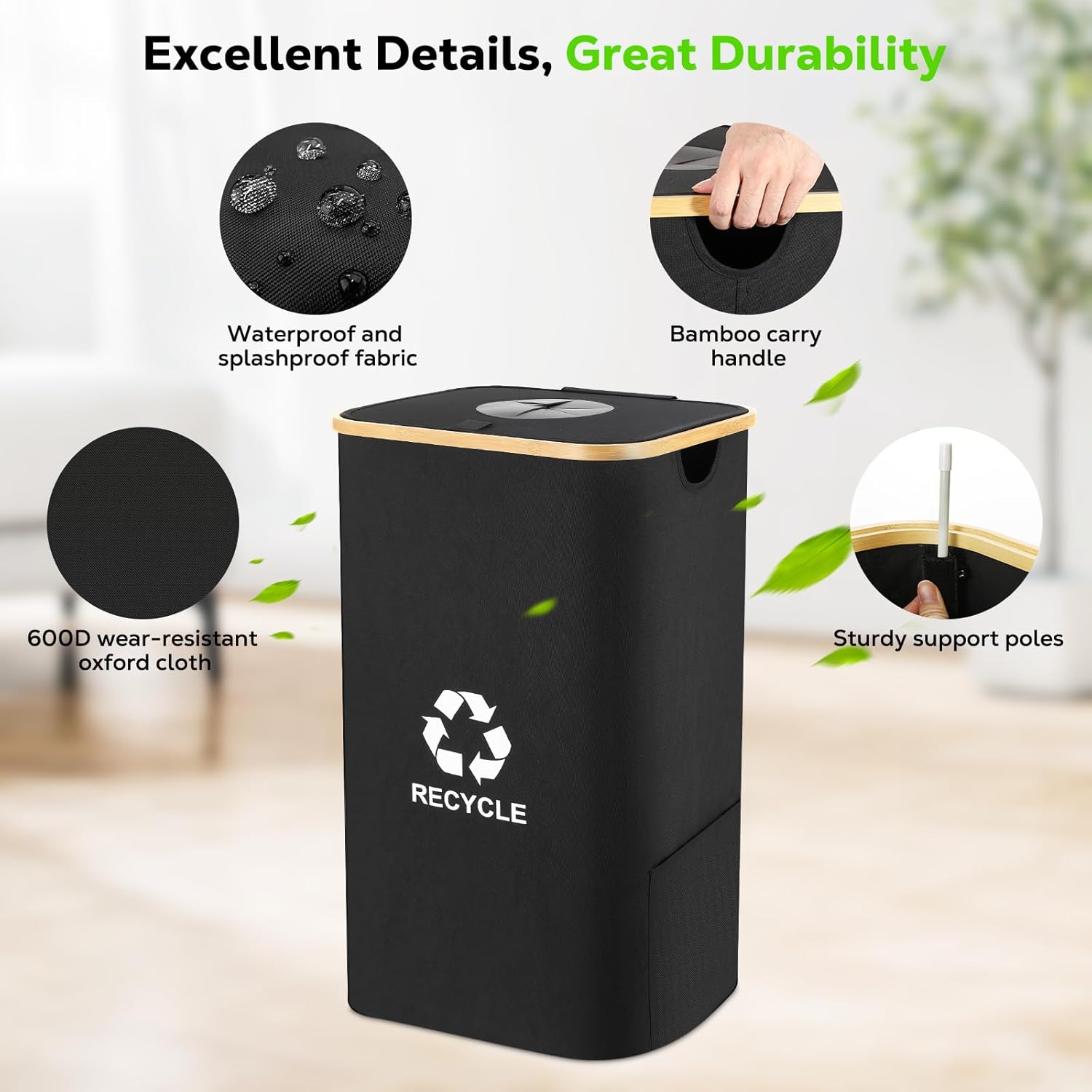 Recycling Bin for Kitchen 100L, 26 Gallon Recycle Bin with 2 Removeable Reusable Waterproof Inner Bag, Large Recycling Bin with Lid for Bottle Can Plastice Stickers (Black)