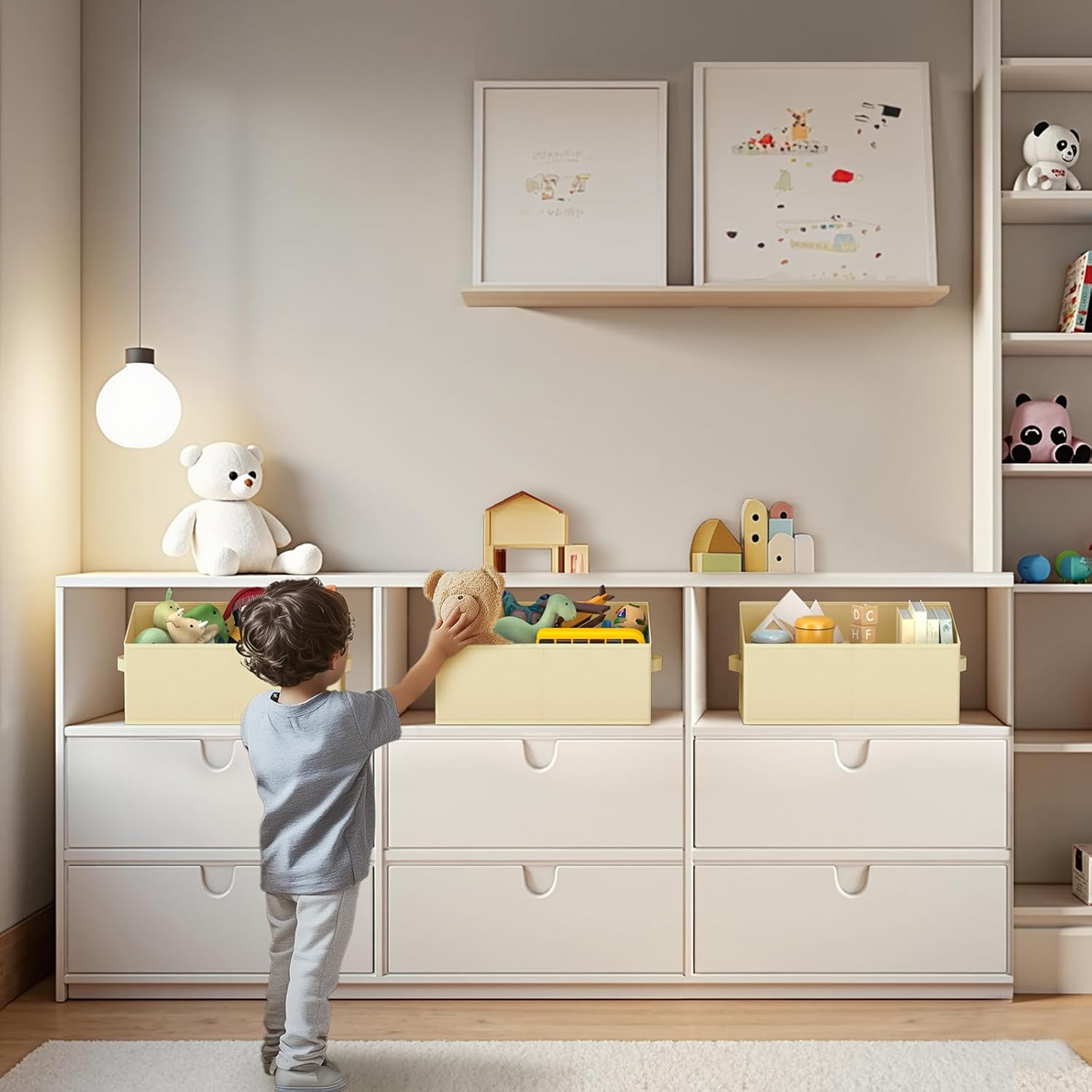 - 【Trapezoidal Design】These storage cubes are Trapezoid design that makes finding things convenient, also allows easy access when putting on the highest shelf. These are ideal closet bins for clothes, bags, shoes, towels, blankets, toys, dolls, and more