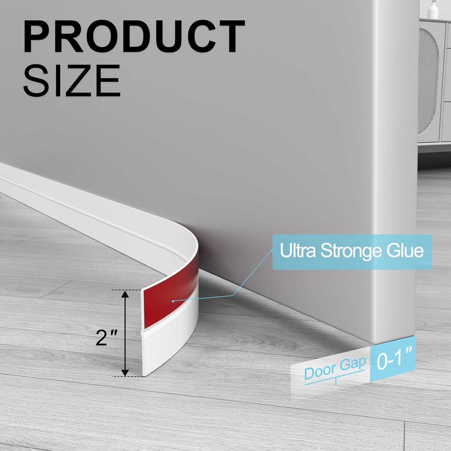 Heavy-Duty 20 ft x 2 in Weather Stripping, Door Draft Stopper Silicone Seal Strip for House and Glass Shower Doors for Collision and Side Gaps of Door and Windows, White