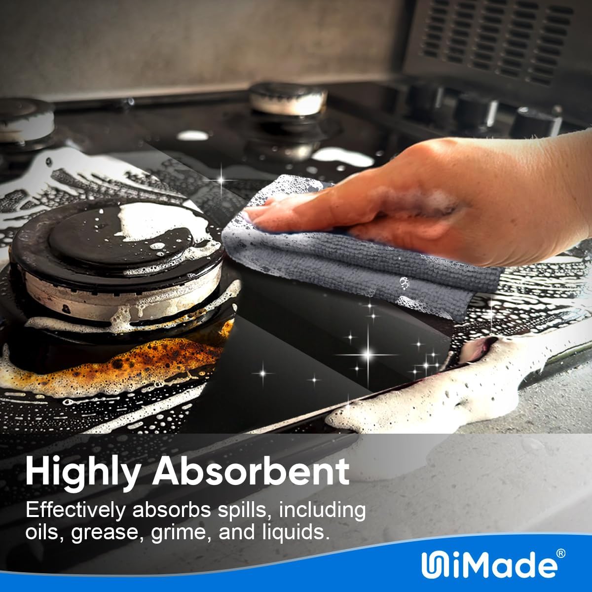 - Powerful Cleaning: Unimade commercial grade microfiber cleaning cloths boast exceptional cleaning power, tackling messes with ease. From spills to stains, they deliver a thorough clean every time. Say goodbye to stubborn stains and spills with our shop towels