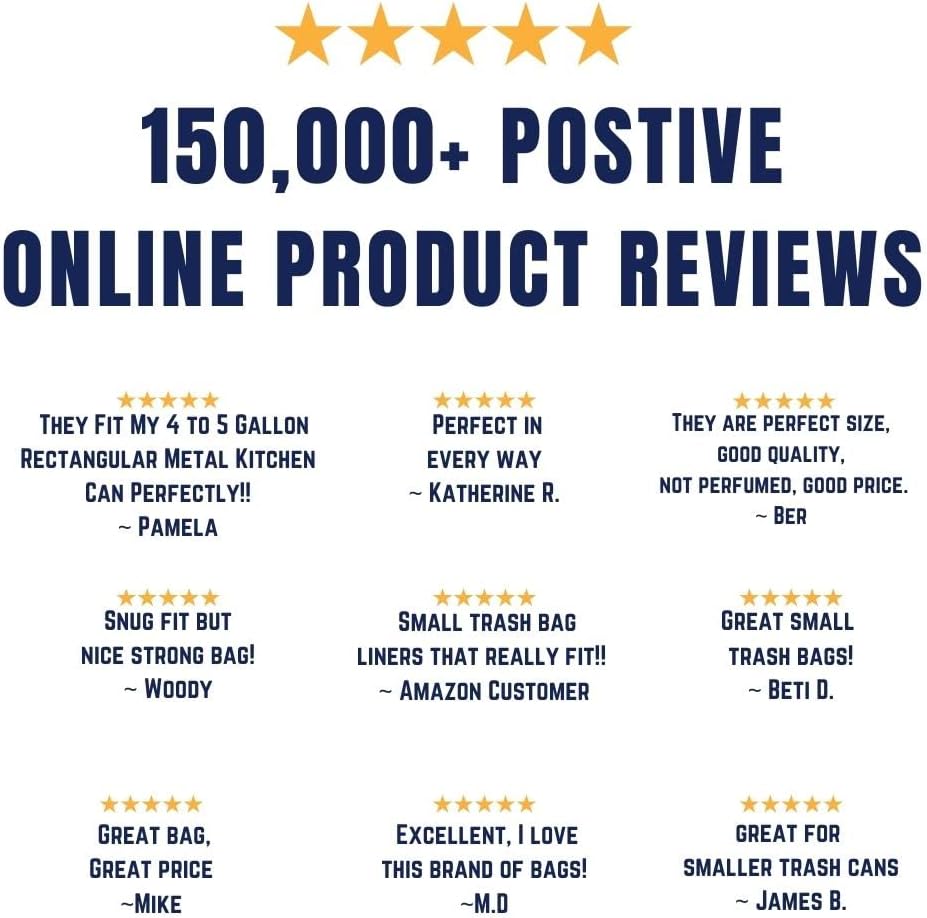 - True gauge – 0.7– These 6 gallon white bags are durable and designed to carry your trash without leaks or tears.