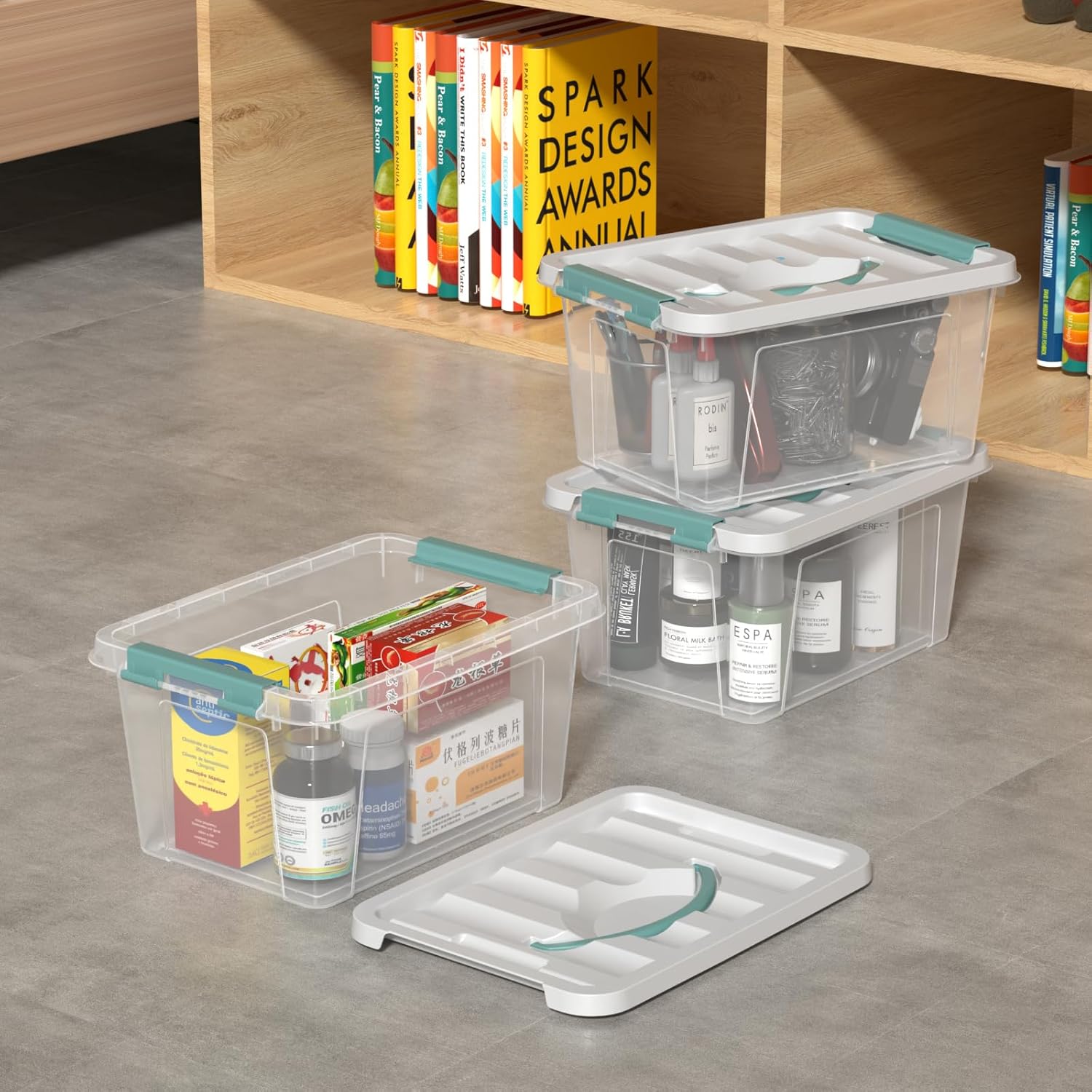 Zopnny 7 Quart Small Clear Storage Latch Box with Lid, Plastic Stackable Storage Bin, 6 Pack