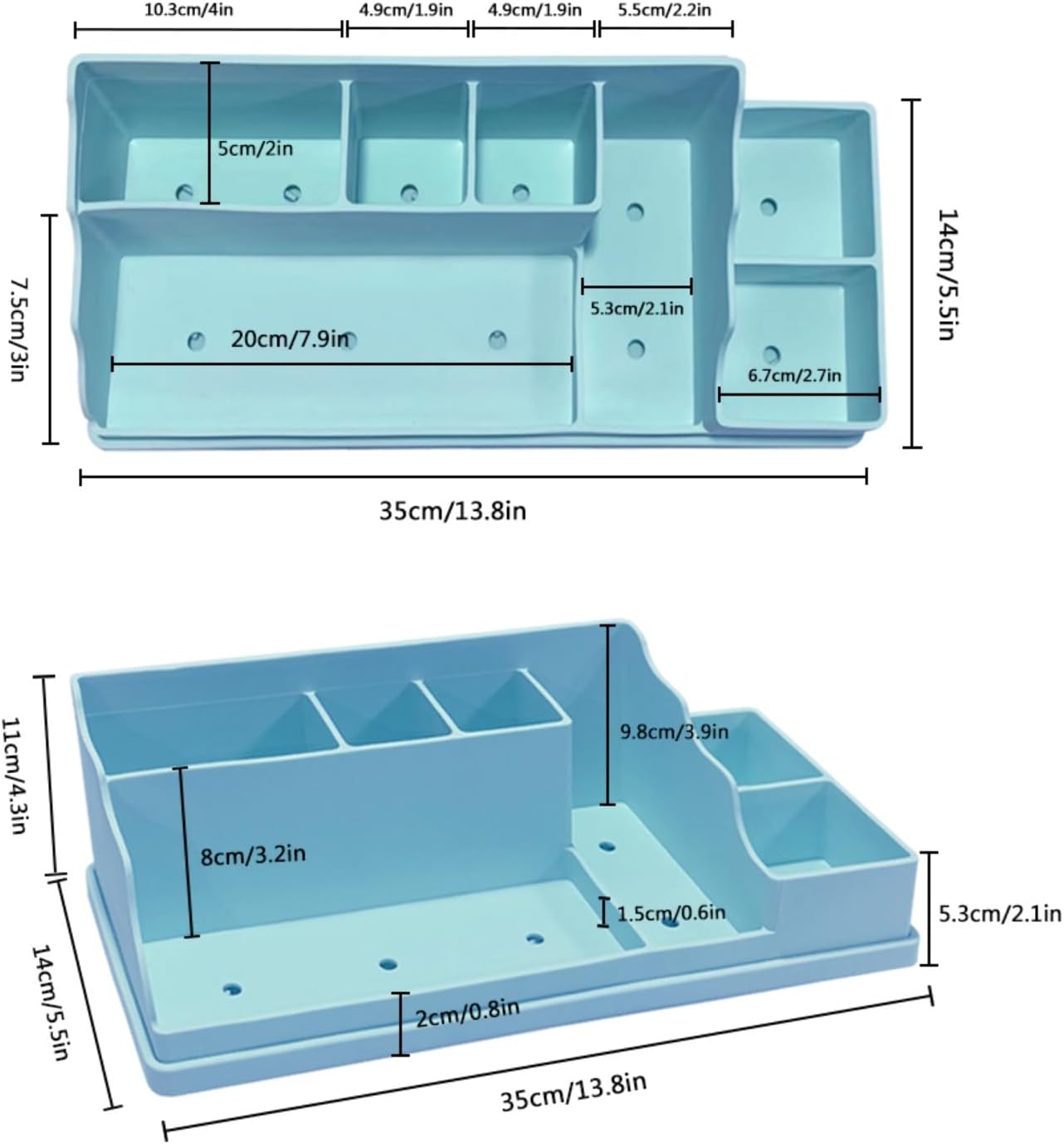 - LARGE CAPACITY TOOTHBRUSH HOLDER: Countertop bathroom vanity is designed with 2 rows of 7 slots, suitable for large space. Split level divider design, you can place bathroom supplies, electric toothbrushes, bamboo toothbrushes, toothpaste, makeup, makeup remover, spray, razor, makeup remover, makeup remover cotton pads, cotton swabs, cleanser, and other bathroom accessories individually. Keep your bathroom tidy and say goodbye to clutter.