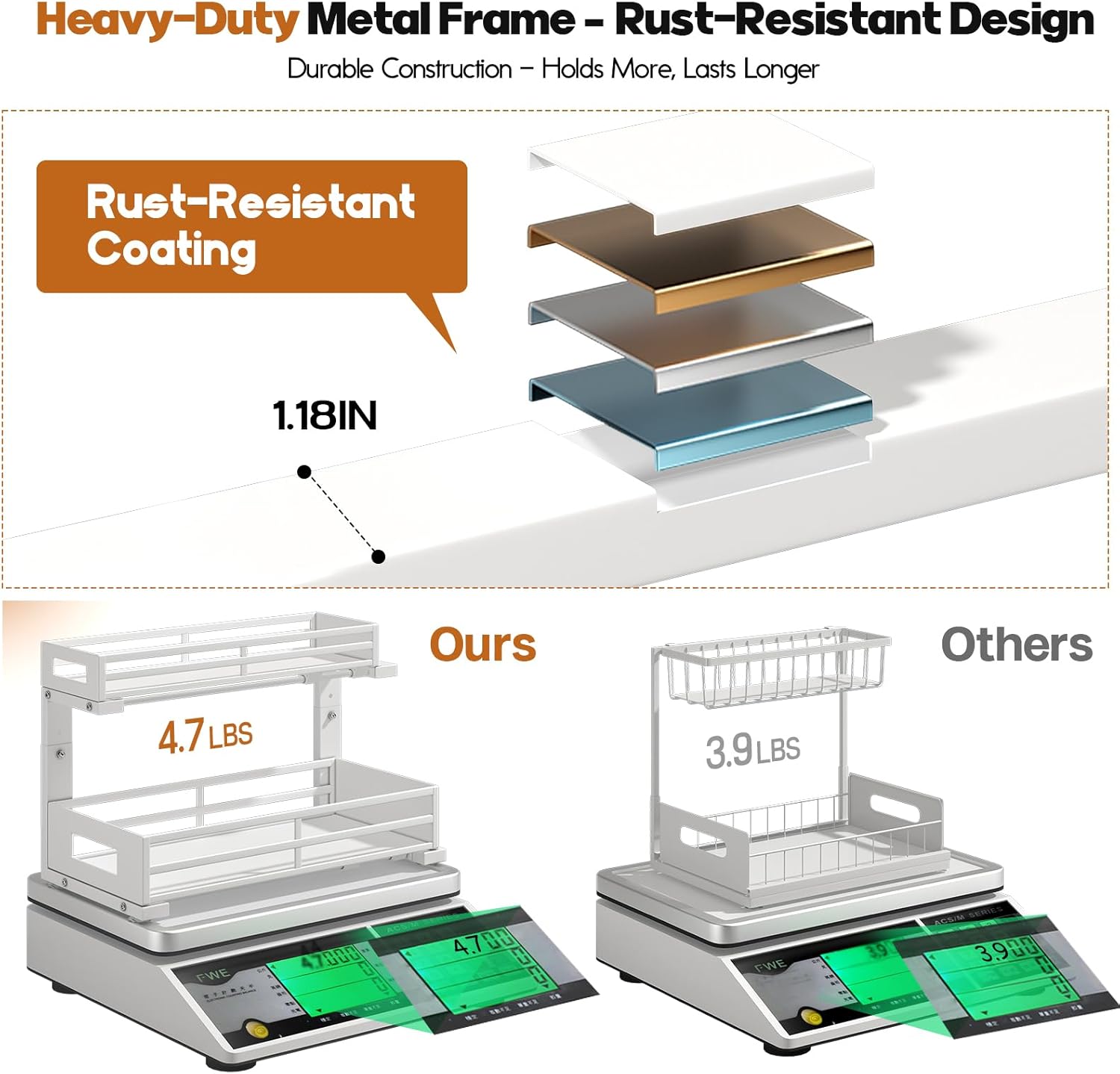 - 【Sturdy metal sheet frame& Rust-Proof】The under sink organizer is built from solid metal sheets with a strong frame and superior rust-resistant design, making it durable and ideal for long-term use in humid areas like kitchens,bathrooms and Laundry Room.