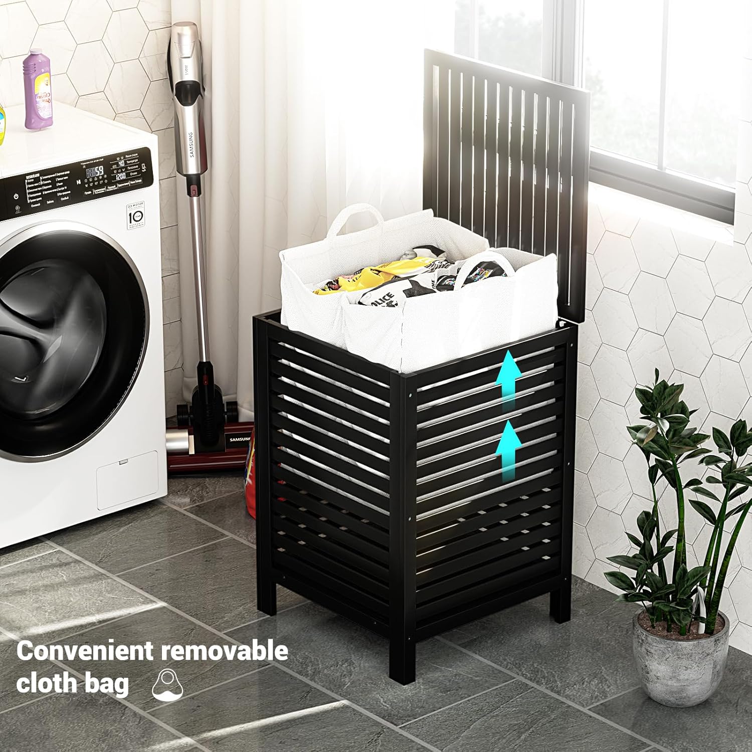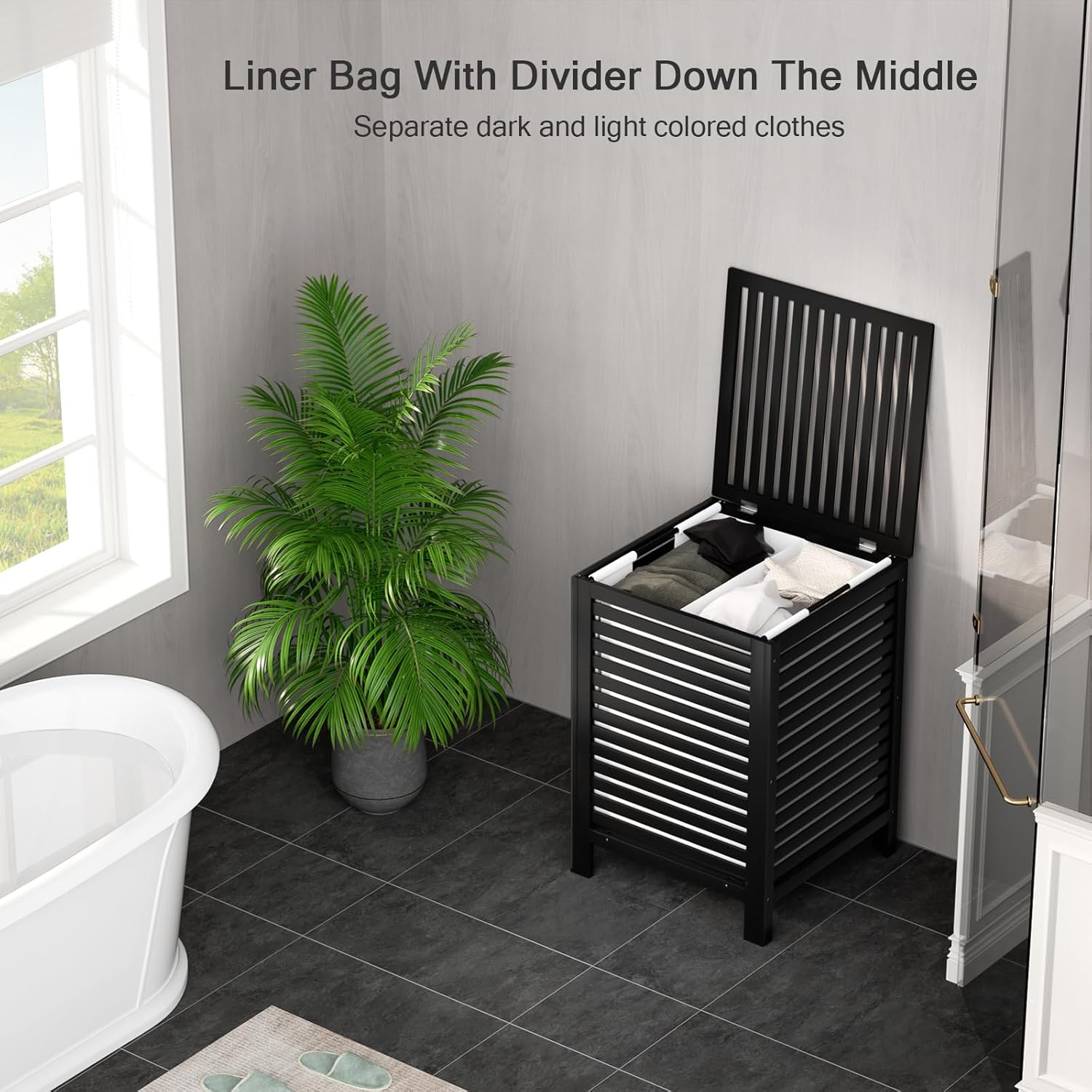 - REMOVEABLE LINER BAG - Stable bamboo construction will outlast loads of laundry, the divided liner bag is removable. When it’s time to do the laundry, just lift the lid and take out the inner bag, the bamboo laundry basket itself can stay where it is, as a decorative detail for any room. Removable liner bag with handles makes it easy to move this laundry basket from room to room. Please do not put the liner bag into the washing machine, it cannot be used as a laundry bag.