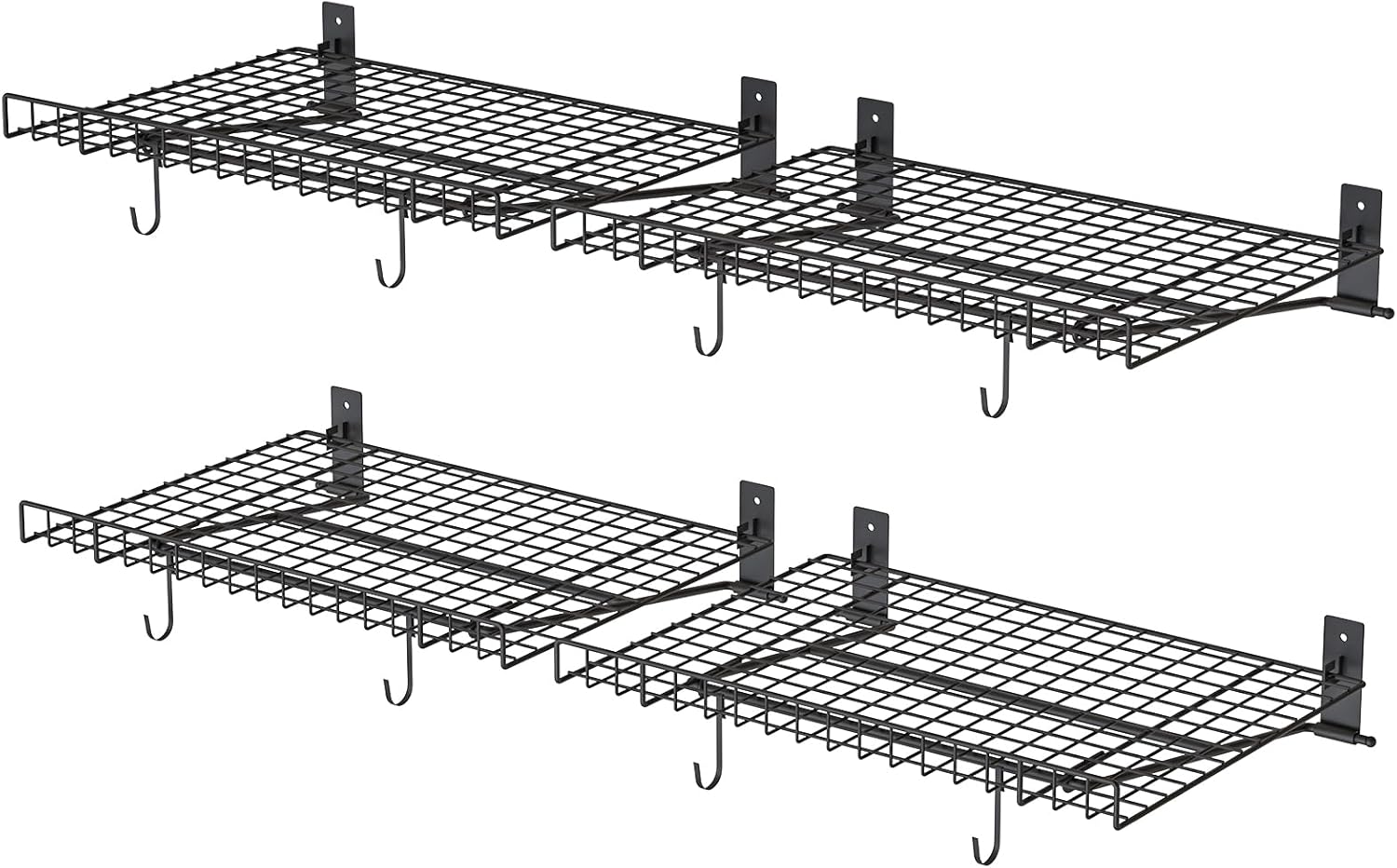 - SPACE-SAVING & FOLDABLE DESIGN: This set of 4 garage wall shelves includes 8 metal hooks, screws, and expansion anchors. Our foldable garage shelves easily collapse against the wall when not in use, freeing up valuable space and providing convenience exactly where you need it. Ideal for small areas, they offer versatile storage solutions without compromising on functionality.