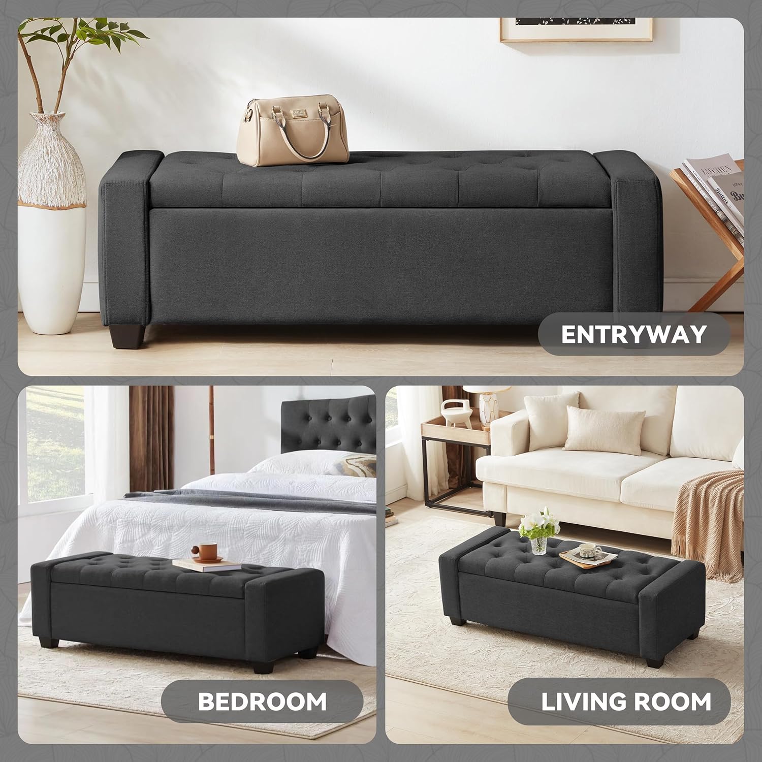 48" Ottoman with Storage, Soft Storage Ottoman Bench for Bedroom, Tufted Upholstered Window Benches, End of Bed Bench for Living Room, Entryway Bench with Seating, Foot Rest, Darkgrey