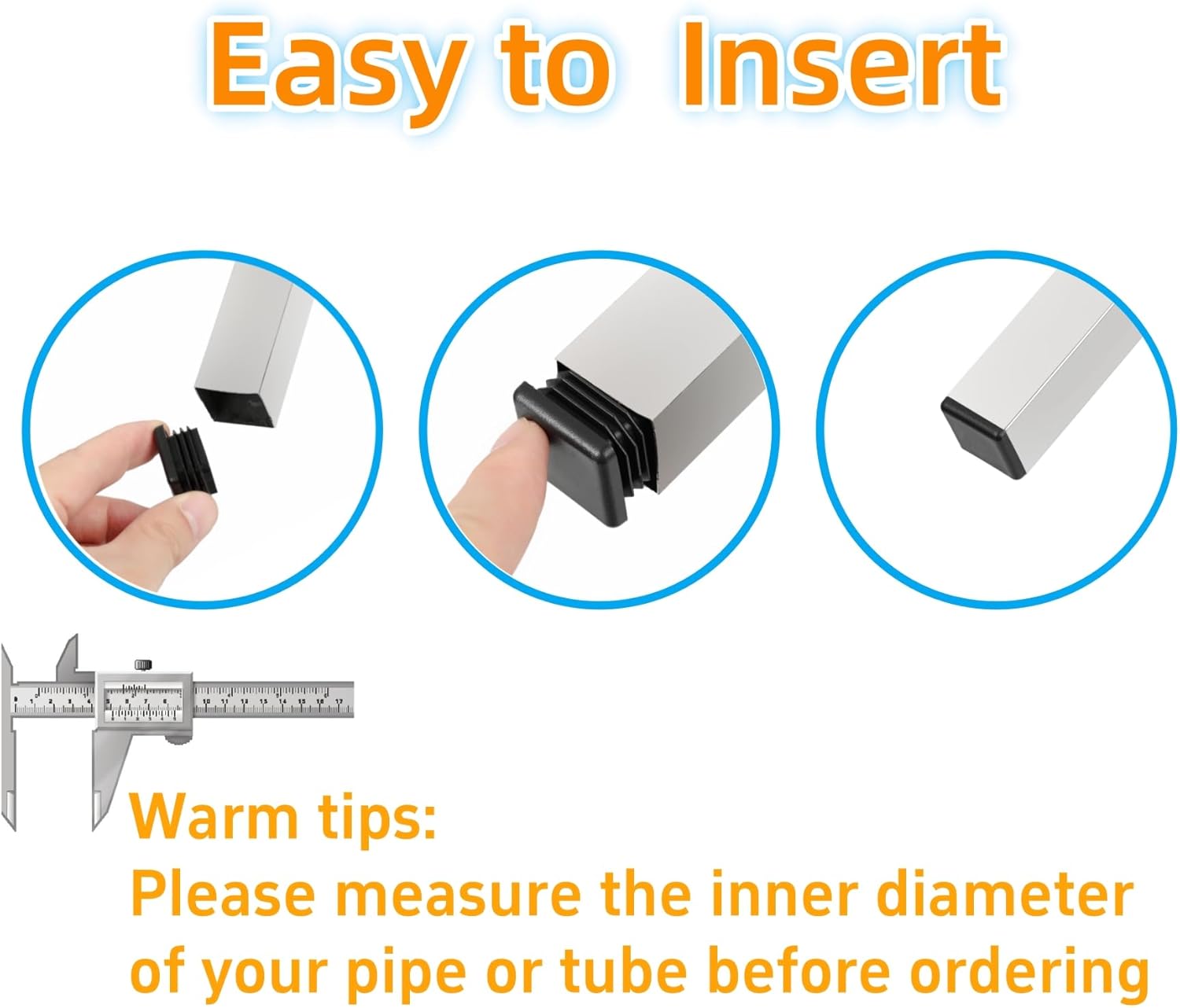 - Square Plastic Tubing end caps made by high quality plastic material and no odor smells,4.5mm thicken bottom, durable chair glide. Best furniture slider for carpet, moving easily. Chair leg inserts for metal legs, keeping securely