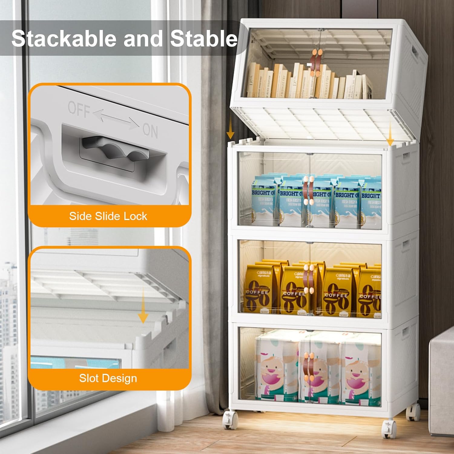 - 【Smooth Mobility with Locking Wheels】: Easily move your storage wherever you need it. These stackable storage bins with wheels feature four smooth-rolling casters, including two locking brakes, keeping your bins stable yet mobile — great for bedrooms, dorms, or offices.