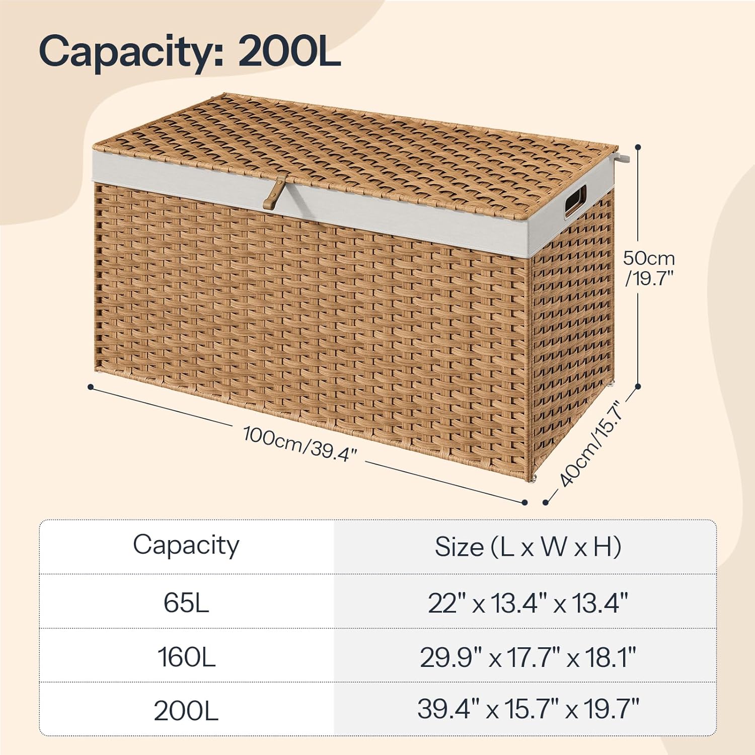 - Ultra-Spacious Storage: This 200L storage basket is a clutter-buster for bedrooms, etc. Its full-open lid lets you swiftly grab or stash clothes, and blankets. No more messy chaos; it turns your space into a neat, organized haven