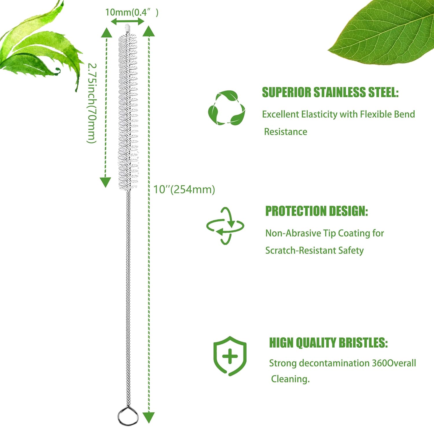 - 【2-Pack Heavy-Duty Straw Cleaner Brush Kit】 This set features two straw cleaner brush extra ong tools (10"/304mm length) with 100mm nylon bristles in 12mm-wide designs. Replace flimsy bottle cleaner brush and pipe cleaners bulk with these eco-friendly brush for straws that conquer stainless steel straws, shaker balls, and keyboard crevices. Outperforms standard pipe cleaners craft and bulky electric bottle brush cleaner - the ultimate long straw cleaner brush flexes without bending in narrow spaces.