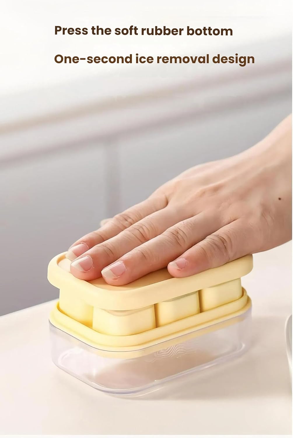 - 【Easy release ice cube trays】 The ice cube tray with lid and bin has a soft silicone bottom that can be pressed with fingers or a lid with multiple upholder,it's very easy to remove ice .Equipped with a small ice box to prevent ice from scattering