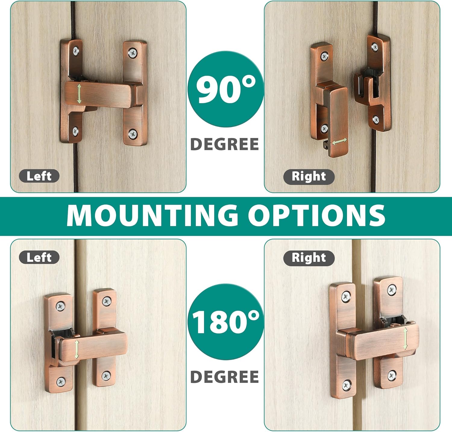 - UPGRADED GATE LATCH: This door lock can be mounted at 180 degree, also can be mounted at 90° right angles, providing space-saving functionality.