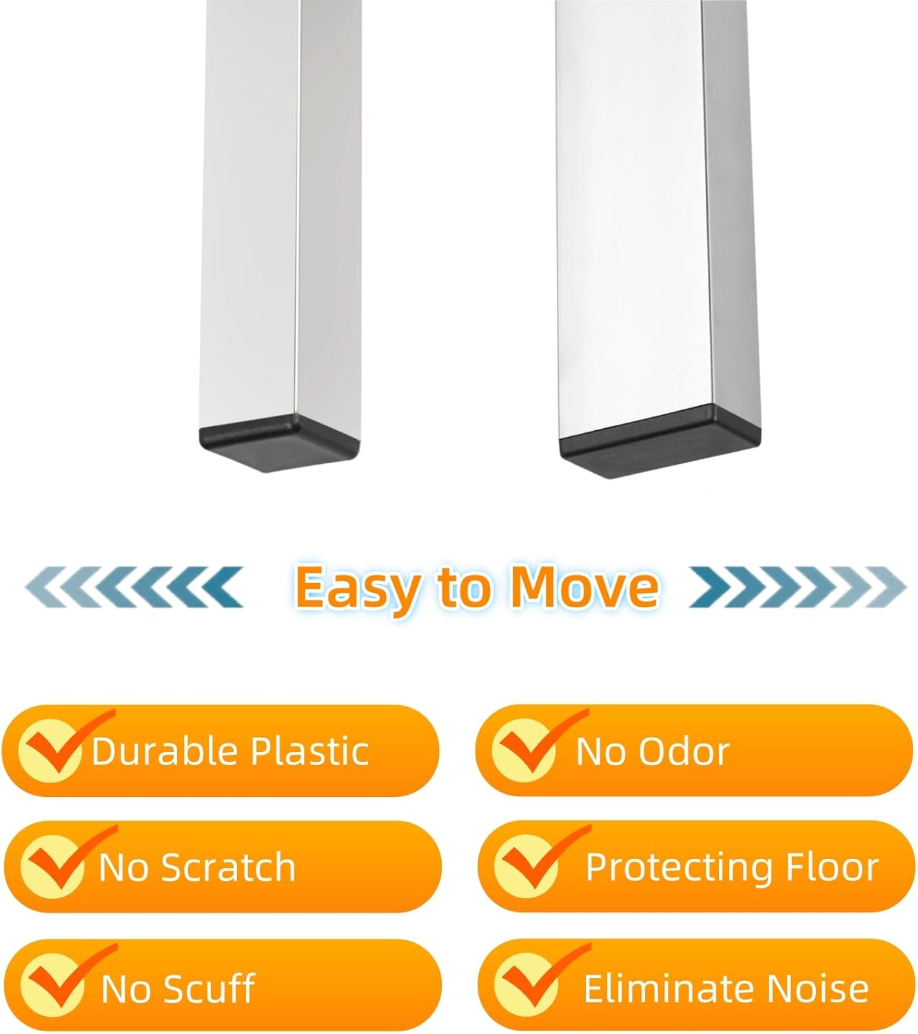 - Square Plastic Tubing end caps made by high quality plastic material and no odor smells,4.5mm thicken bottom, durable chair glide. Best furniture slider for carpet, moving easily. Chair leg inserts for metal legs, keeping securely