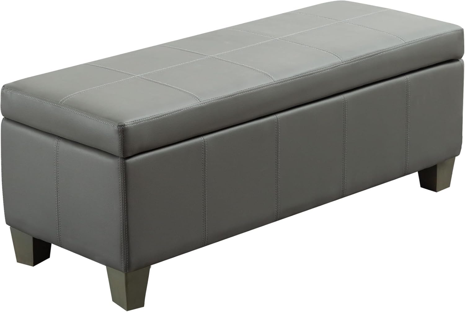51 Inch Faux Leather Ottoman with Storage, End of Bed Bench with Large Storage, Rectangular Extra Long Bench for Bedroom and Living Room, Light Grey