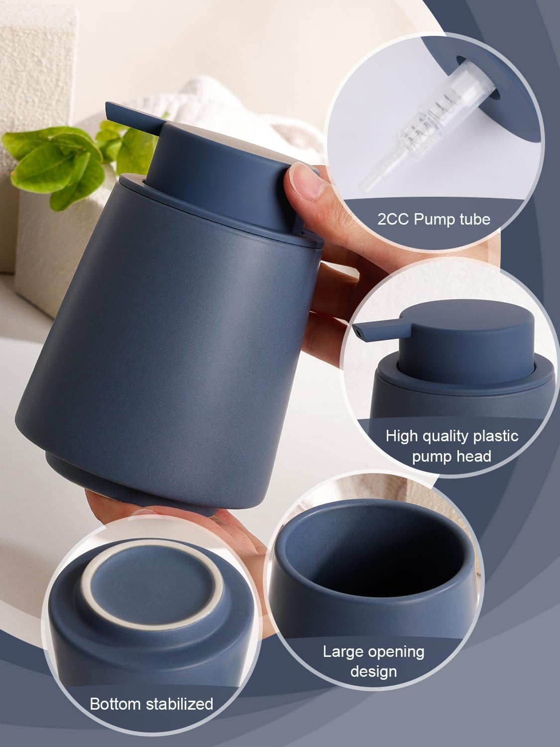 - Ceramic Liquid Soap Dispenser: Natural and safe blue liquid dispenser, can add a variety of room temperature daily use liquid. Reusable, refillable and recyclable