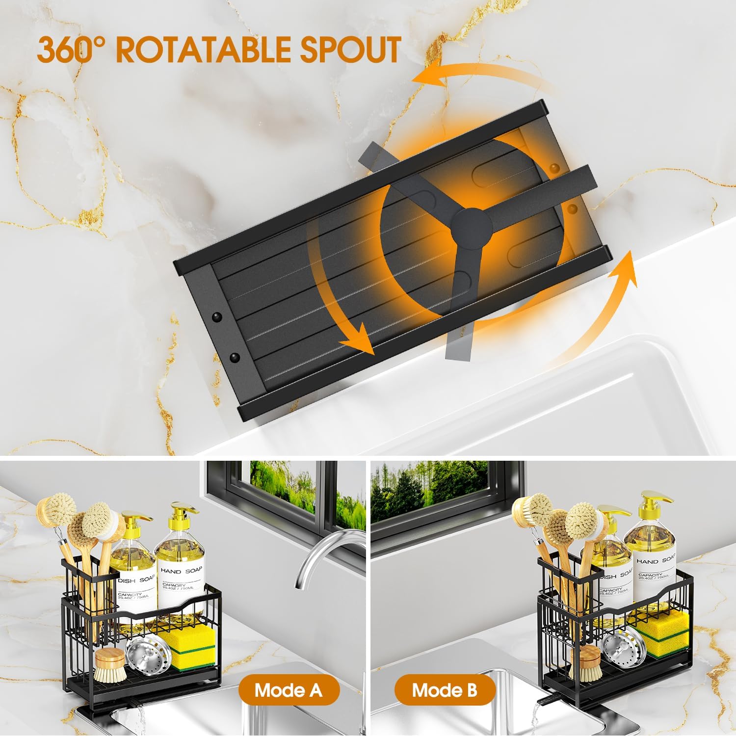 - 【360° Rotatable Spout】This kitchen sink organize comes with a 360° rotating spout,ensures it can swivel in three directions so that the water in the sponge can be directed to the sink.There won't be any water left on the countertop,you don't need to frequently remove the drain tray to clean,saving your cleaning time