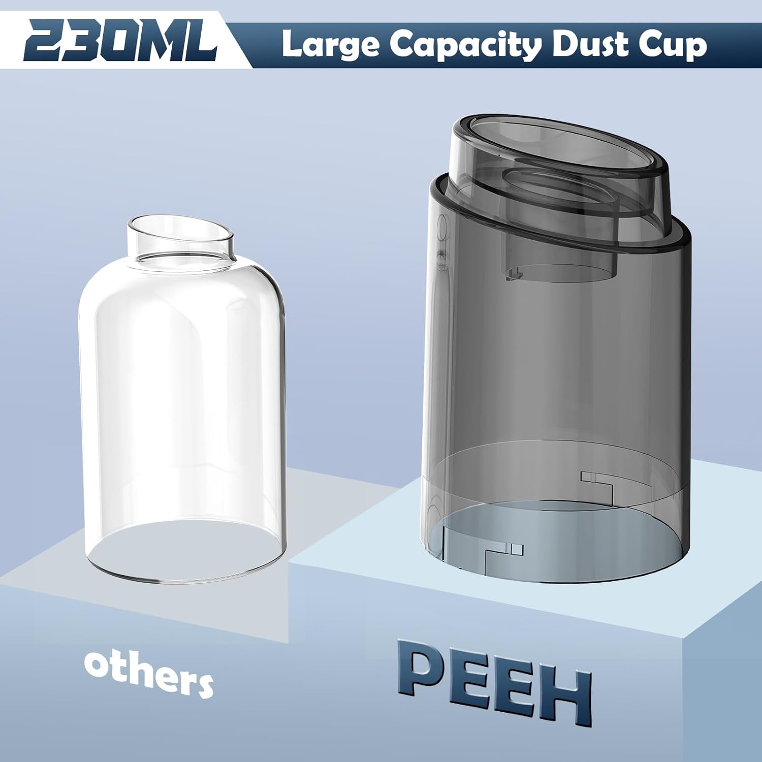- HIGH-EFFICIENCY FILTER SYSTEM - The PEEH handheld vacuum cleaner has a multi-layer, high-density advanced filtration system that effectively captures micro 99.99% of small dust. Ensure clean air, suitable for families with allergies.