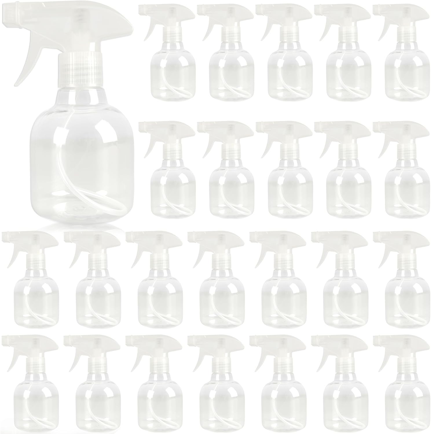 25 Pcs Plastic Spray Bottles 8 oz Empty Clear Refillable Spray Bottles with Adjustable Trigger Sprayers from Fine to Stream for Cleaning Solutions Reusable for Plants Oils Hair