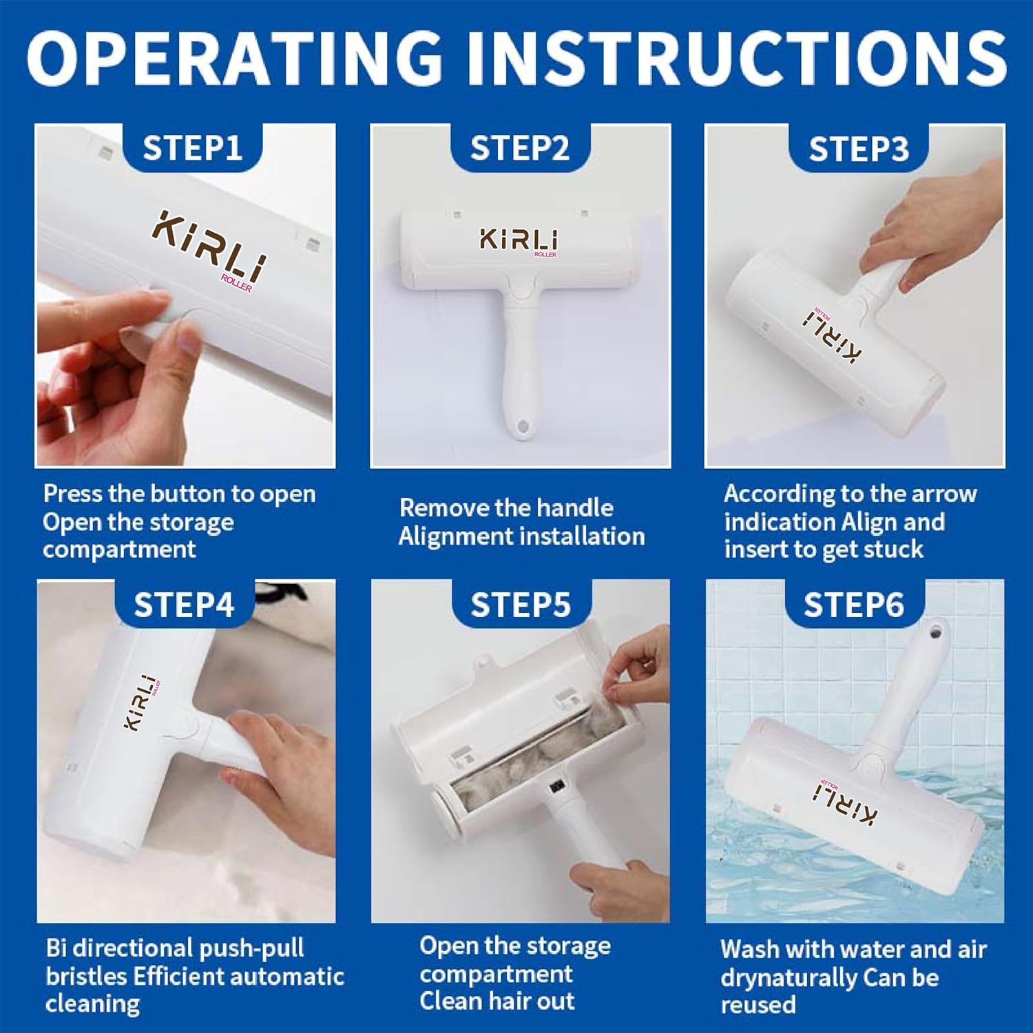 KIRLI Pet Hair Roller, Fur Remover Tool with Built-in Fur bin, Reusable Lint Roller for Pet Hair, Multi-Surface Furniture Clothing, Couch, Carpet, Bedding Cat and Dog Hair Remover (White)