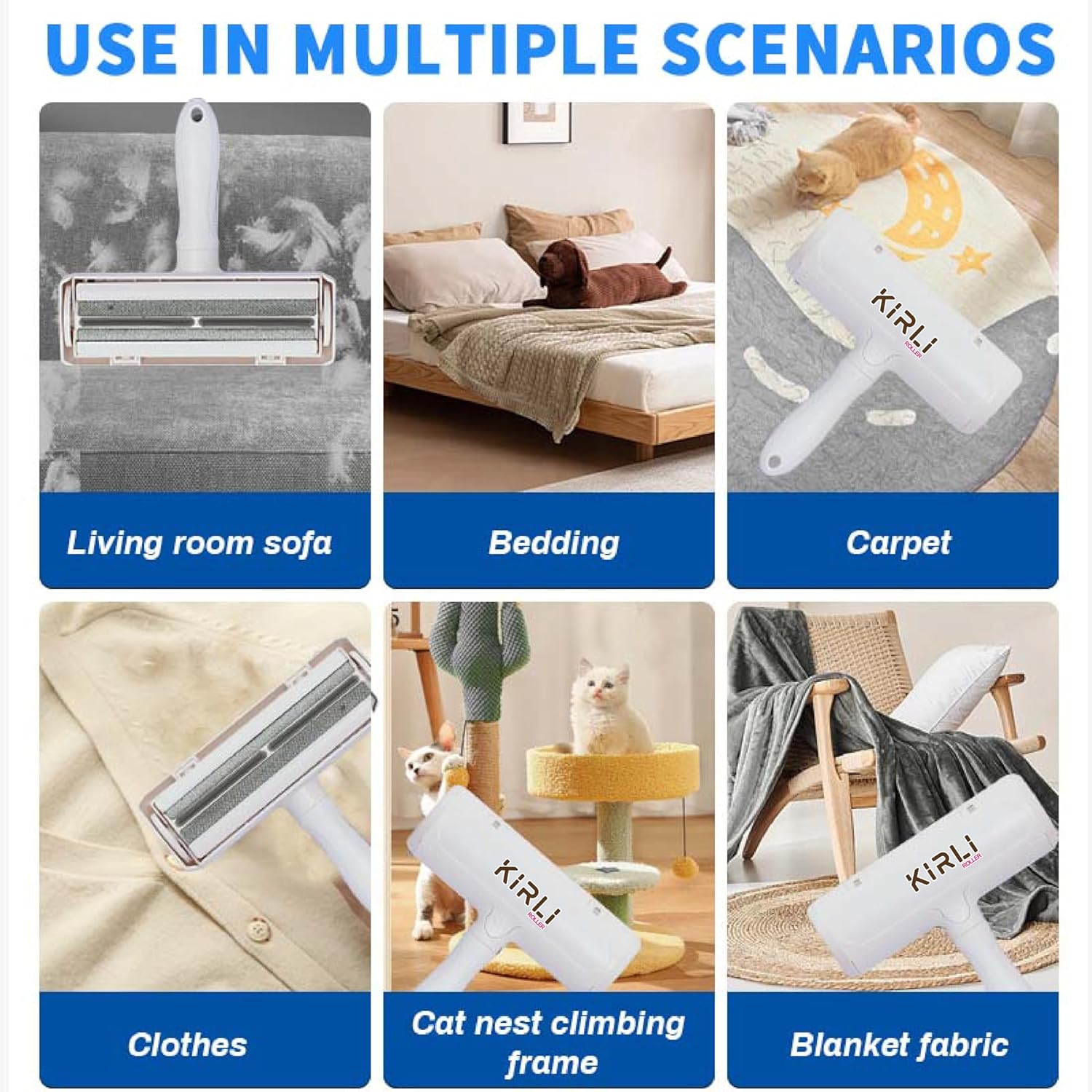 - MULTI-SURFACE USE: Designed for use on furniture, rugs, pillows, clothing and more, this pet hair remover roller is essential for keeping your home free from fur, whether it’s from a dog or a cat.