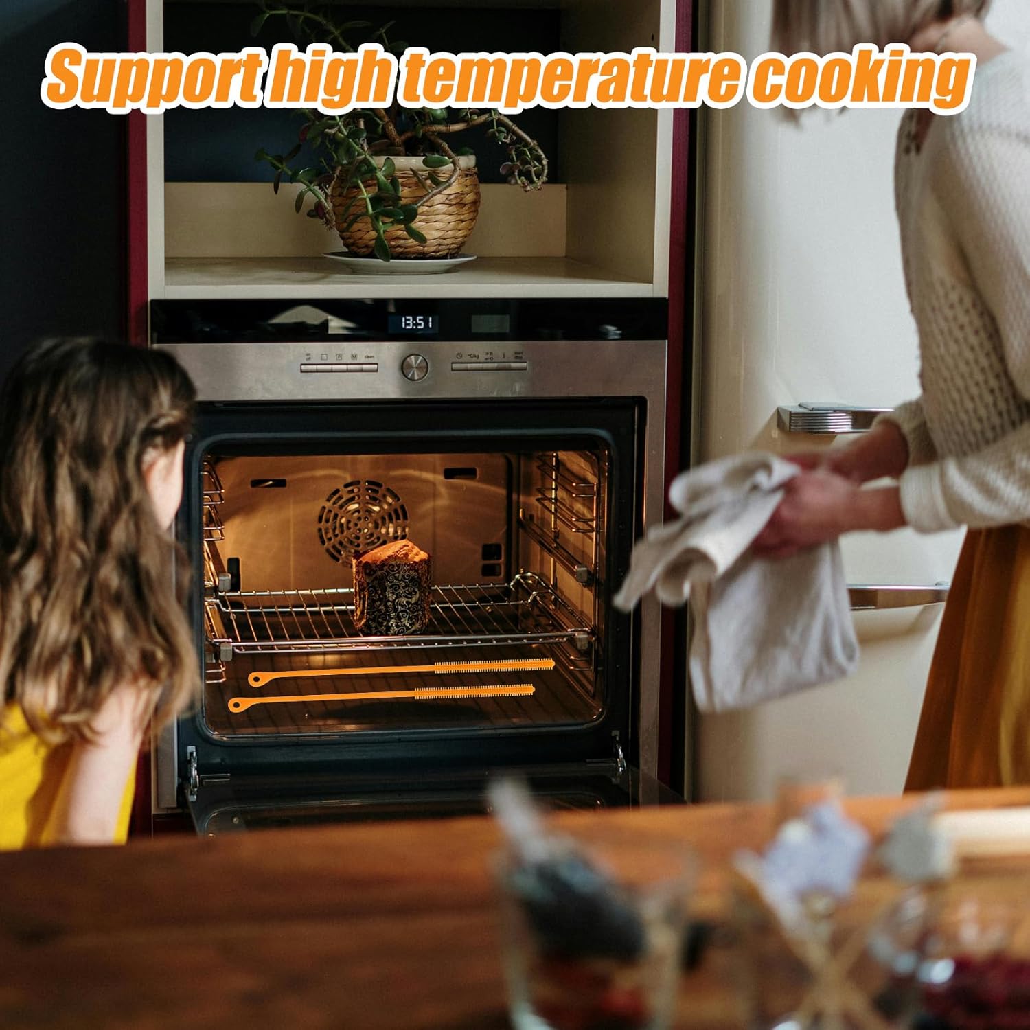2pcs Silicone Straw Brush, 9.5in Straw Cleaner Brush Extra Long Cleaning Brushes Reusable Travel Drinking Bottle Lid Cleaning Tool for Stanley Metal Glass Straws (Orange)