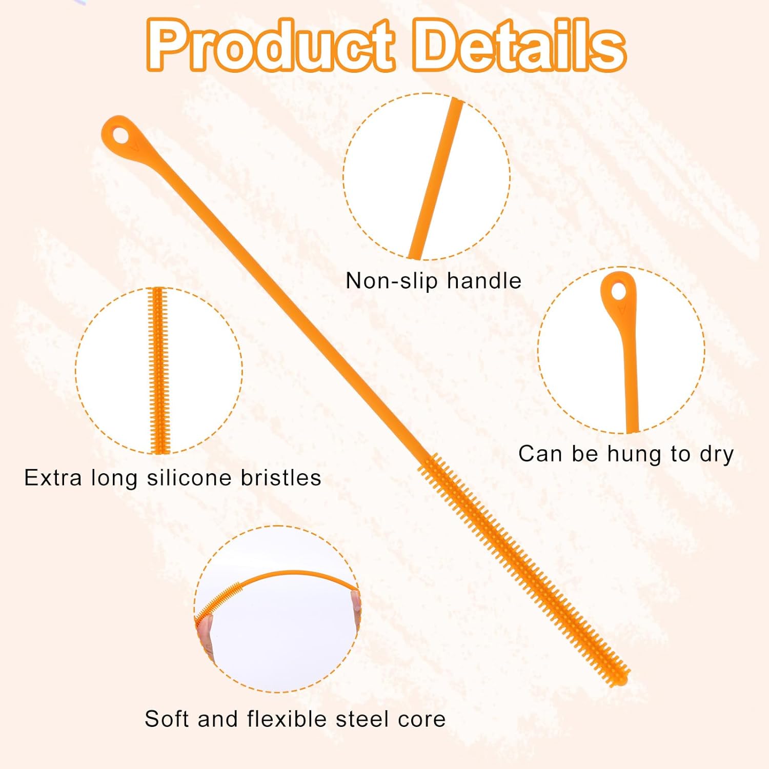 - Size Details: The total length of this silicone straw cleaning brush is 24cm/9.5in. The extended size allows you to clean the dirt deep inside the straw more easily.
