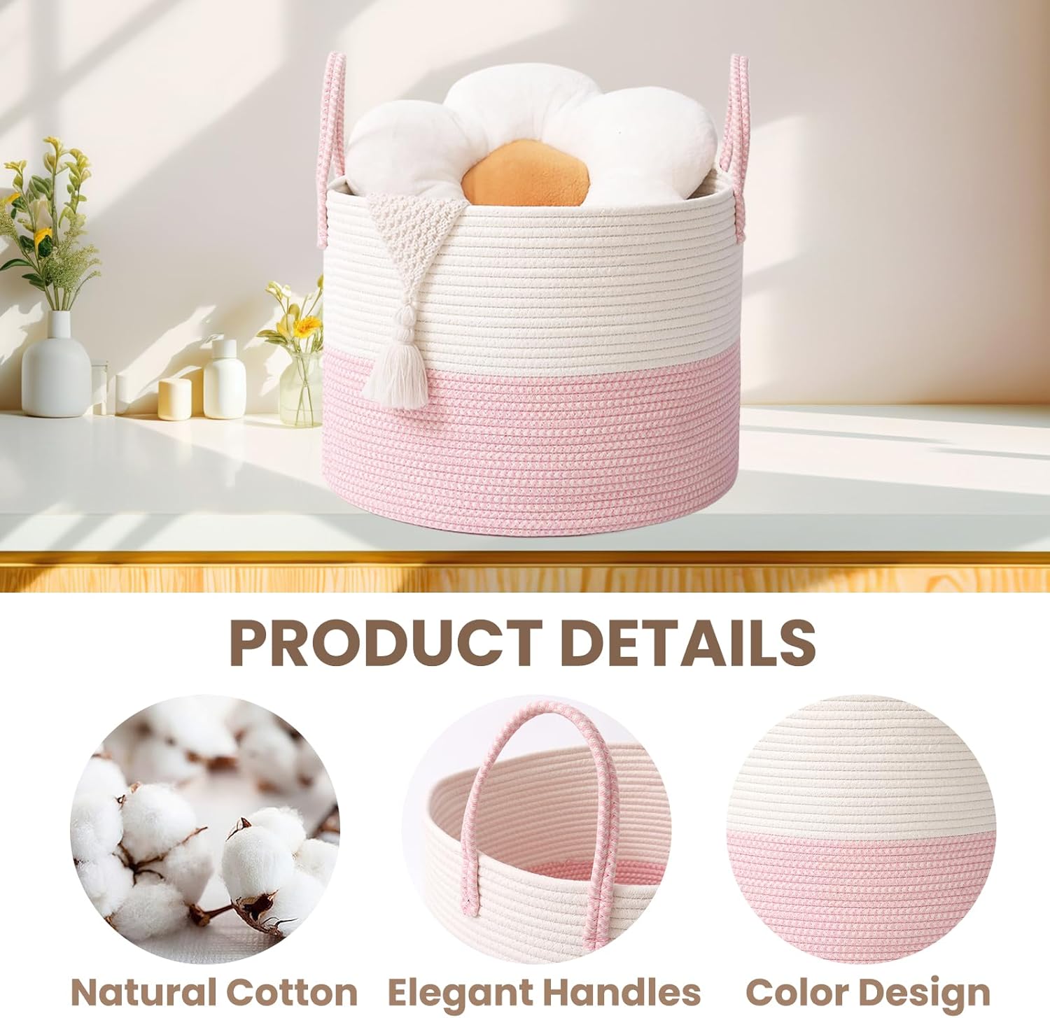 - Natural Handwoven Quality -- Crafted meticulously by hand from natural cotton rope, each basket is a unique, eco-conscious piece. Free from plastics and harsh chemicals, it offers lasting durability for worry-free use.