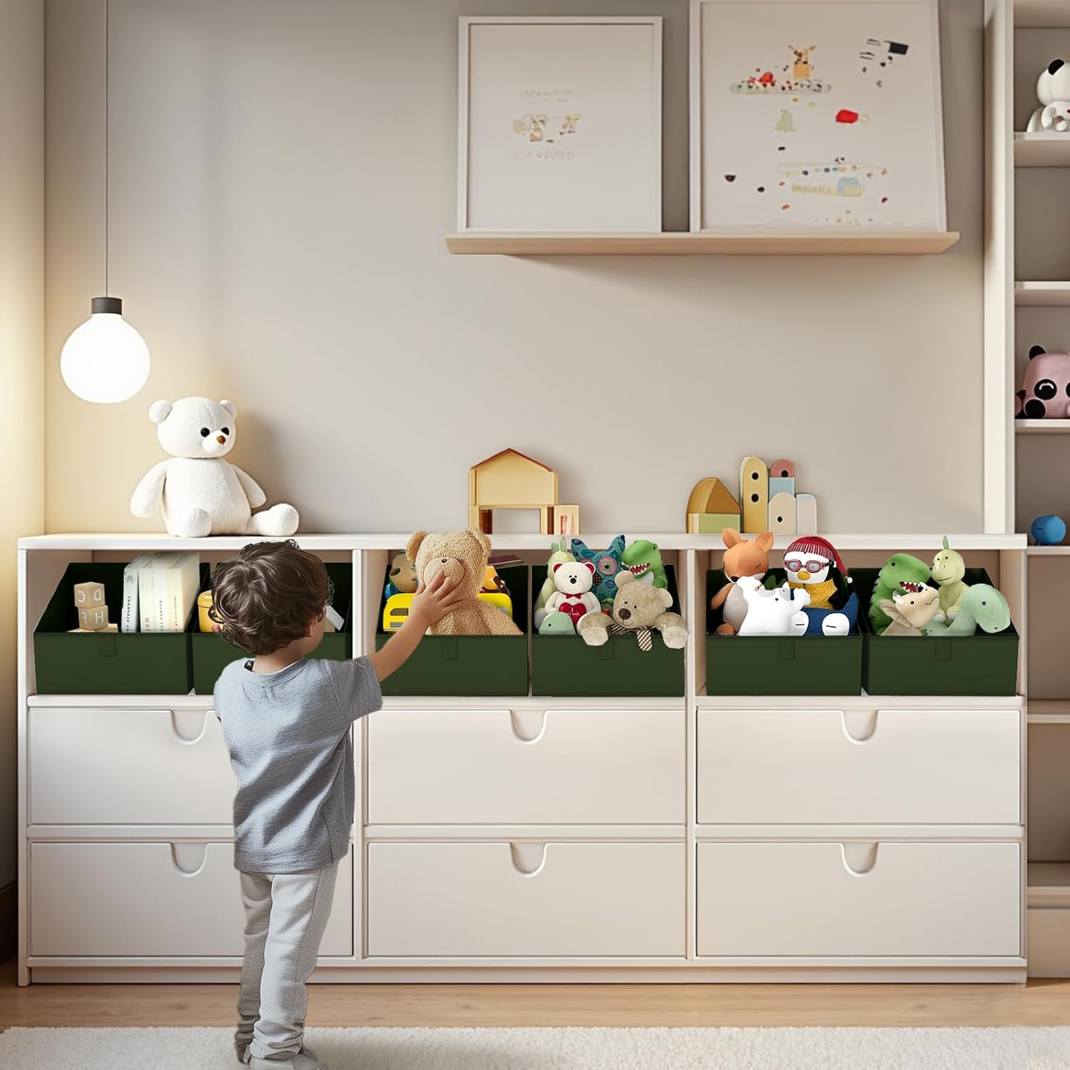 DIMJ Closet Storage Bins 6 Pack - Fabric Trapezoid Closet Organizer Bin, Foldable Storage Baskets for Shelves, Closet Shelf Organizer, Clothing Storage Box for Toys, Books, Towel, Clothes, Green