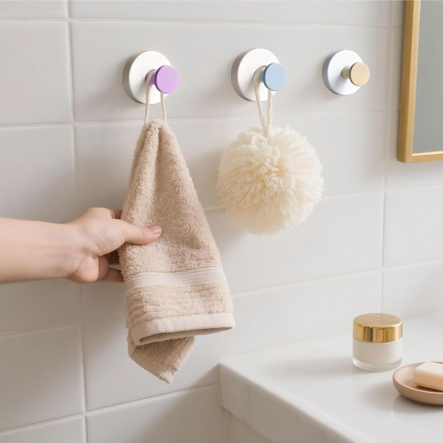 - 【Strong and Reliable Suction Power】 Featuring advanced vacuum adsorption technology, these bathroom hooks securely attach to smooth surfaces like bathroom tiles and glass doors, ensuring a firm hold for long-lasting use without slipping or falling.