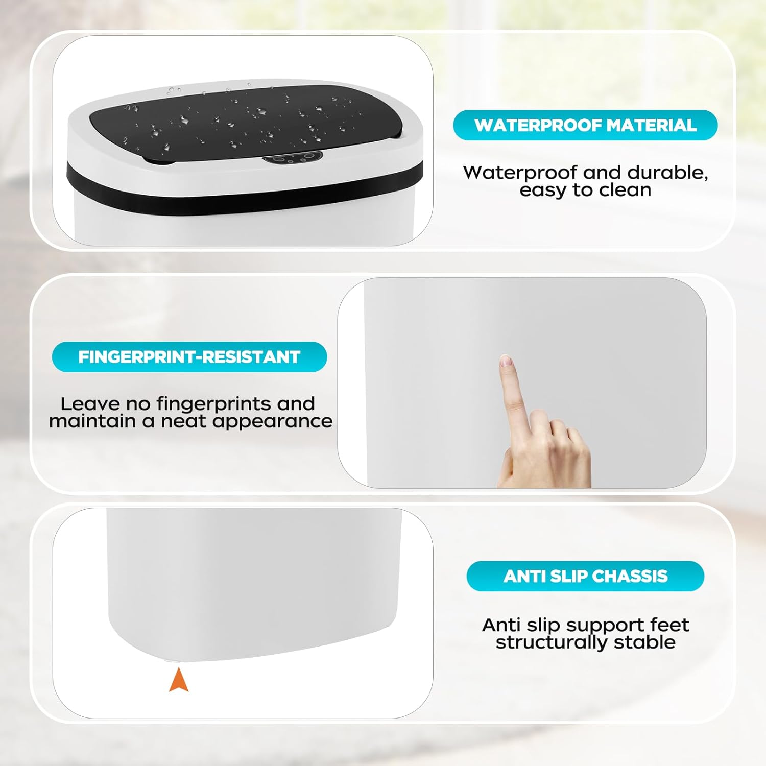 - Silent Operation: Designed with noise reduction in mind, our touchless trash bin operates quietly, offering a seamless experience in any setting, including bathrooms. The gentle opening and closing mechanism ensures a peaceful environment for you and your family.