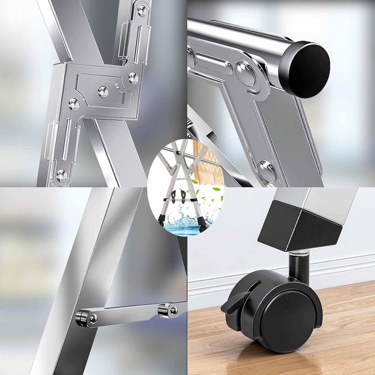 - ffortless MOBILITY :No assembly required – ready to use straight out of the box! Equipped with 4 smooth-rolling wheels, this laundry drying rack moves effortlessly between indoor rooms and outdoor spaces, without damaging floors. Folds compactly in seconds when not in need