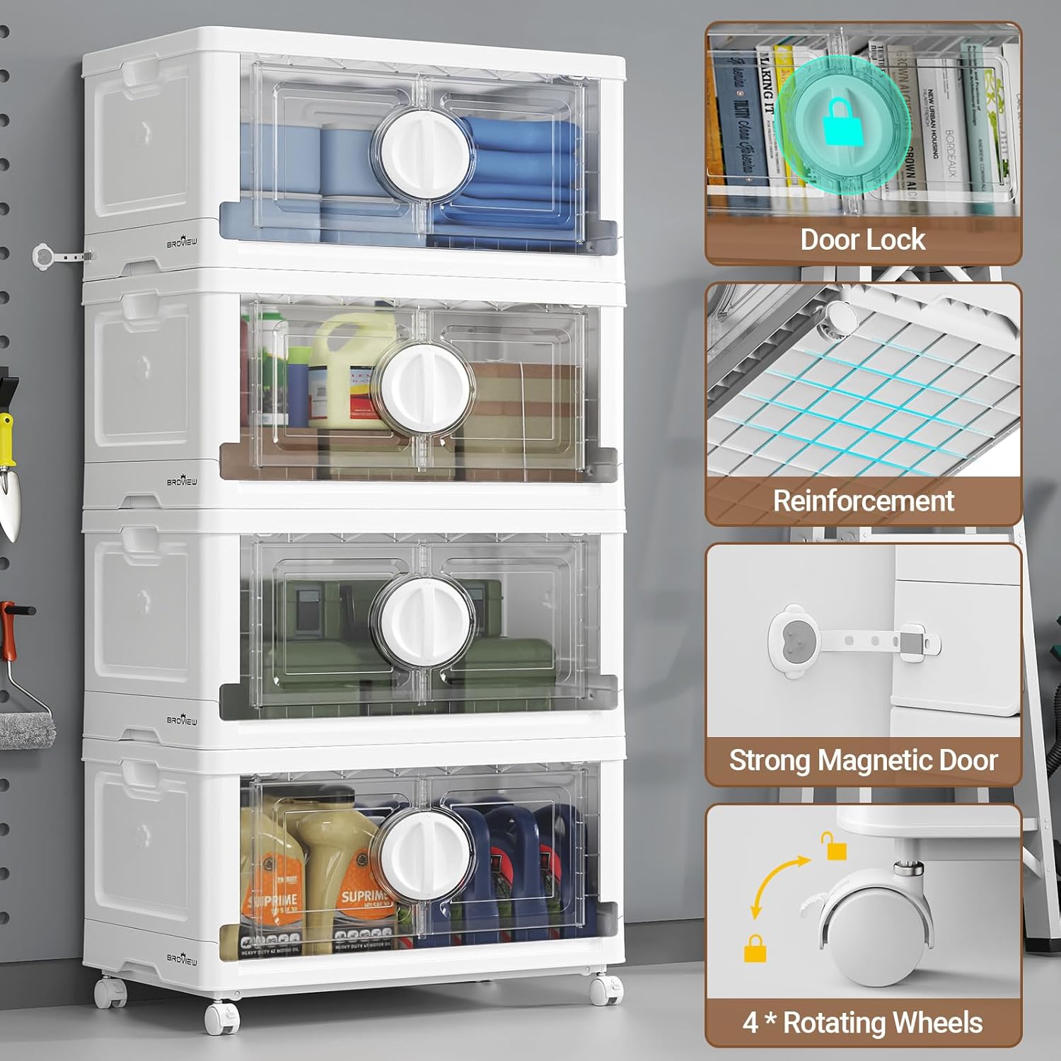- 【Large Capacity & Premium Quality】Broview V9 storage bins assembled dimensions are 25.39'' L x 16.54'' W x 14.57'' H (per layer). Each layer can hold up to 28 gallons or 112 quarts of items and bear a maximum weight of 110lb. Crafted from high-grade PP material, our plastic storage organizers are built to withstand daily wear and tear, ensuring long-lasting durability and reliability.