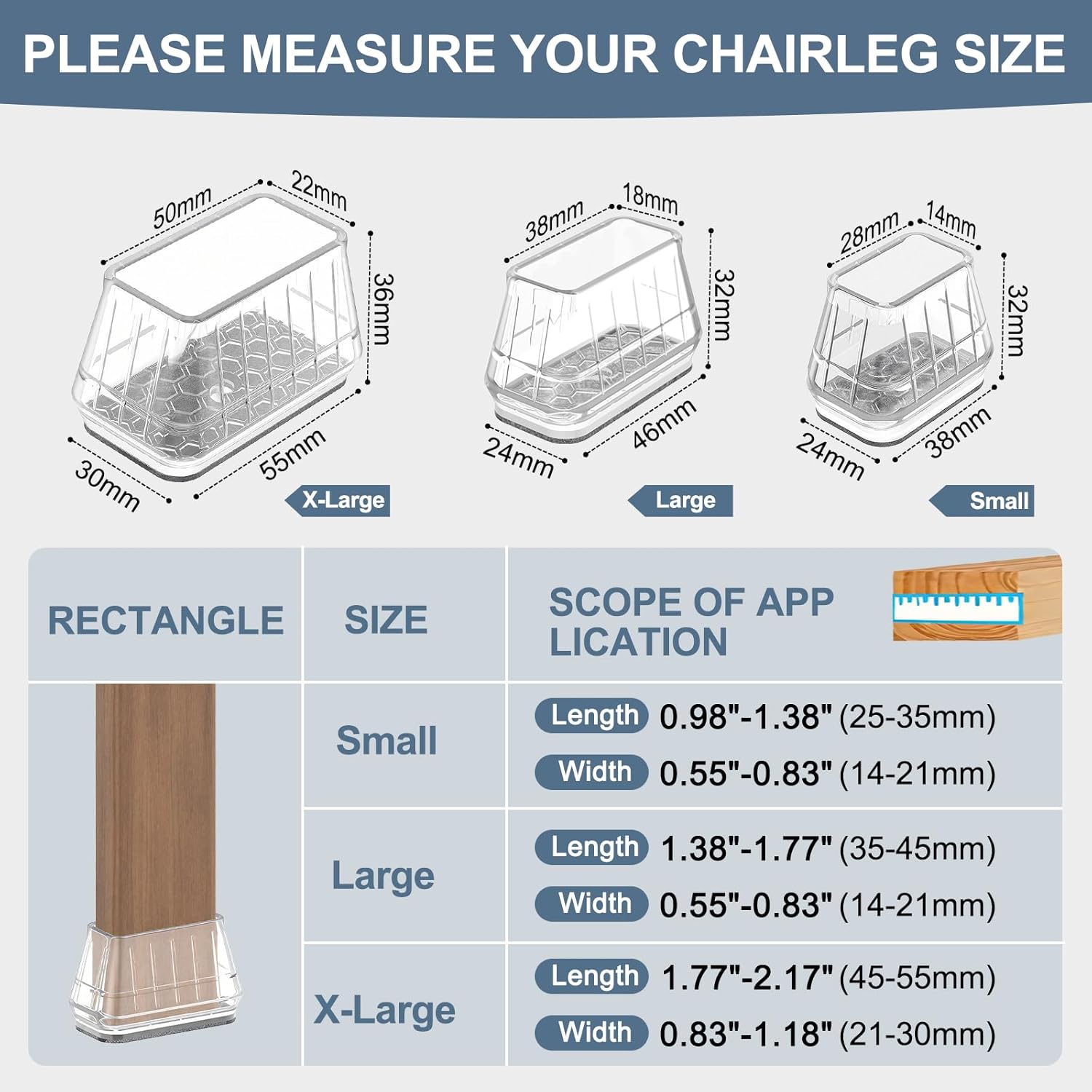 - ✅【Applicable Range】The chair leg covers to protect floors fit for rectangular chair legs. Length fit for 0.98''-1.38''(25mm-35mm), width fit for 0.55''-0.83''(14mm-21mm).