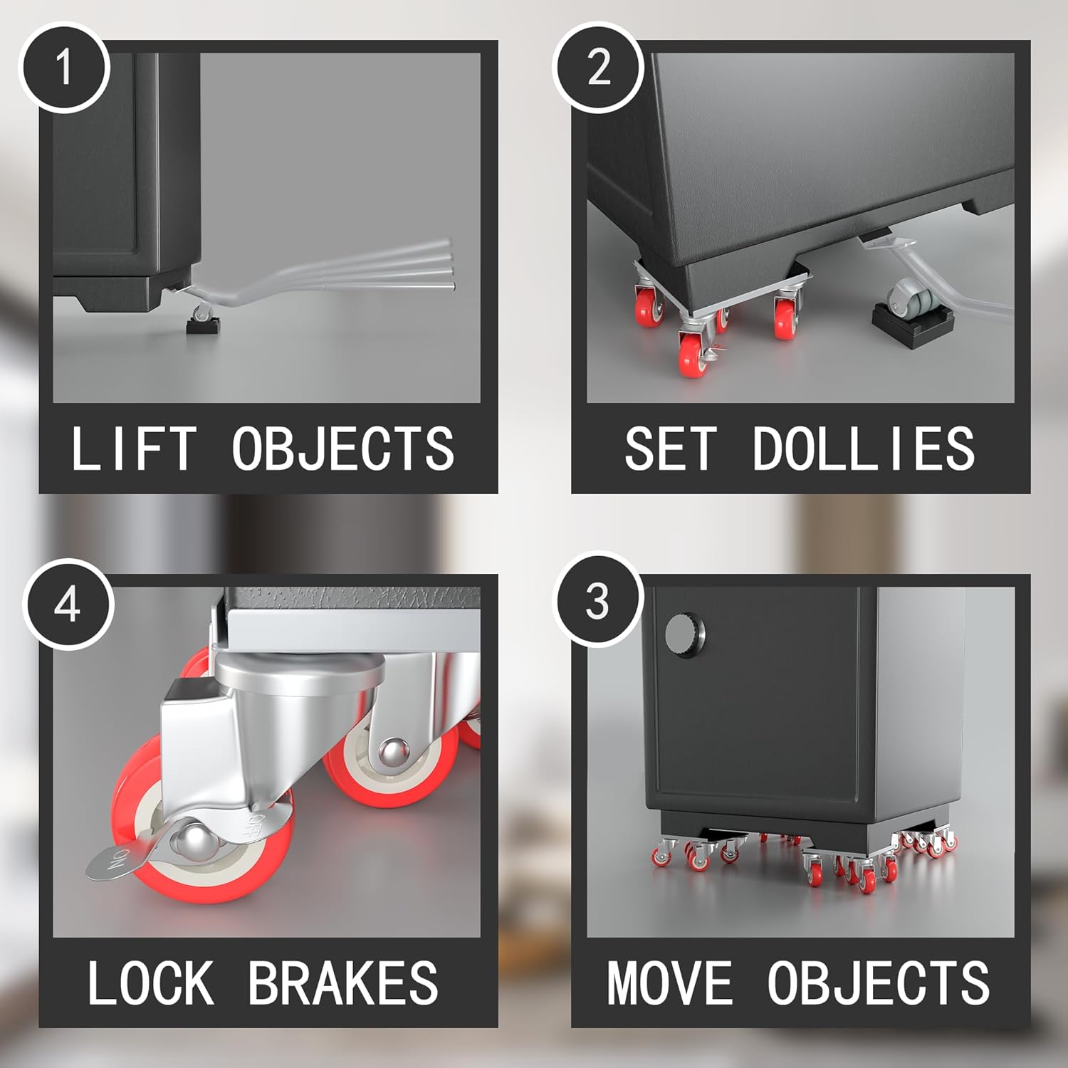 - [WIDELY USED]:When you have this moving tool,you can use it to move all kinds of furniture and appliances,such as beds,sofas,tables,closets,refrigerators,washing machines,etc.;you can easily move objects,suitable for applicable wood floors,tile floors and low-pile carpets,etc.