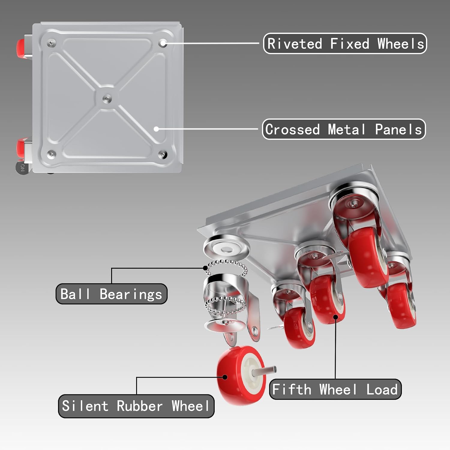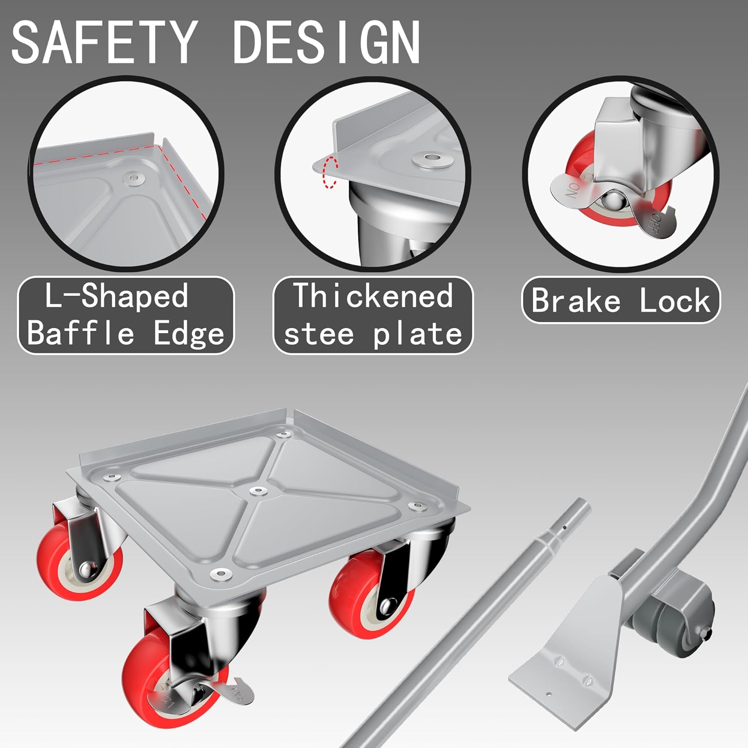 - [NEW UPGRADED DESIGN]:Furniture dolly with wheels uses a larger load-bearing panel with a fifth wheel in the center to increase the load-bearing capacity;designed with L-shaped retaining edge,not easy to slip off during handling,with two locking switches can be fixed at any time,anti-pressure handle tow hook can effectively protect fingers.