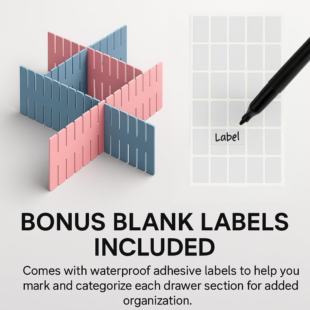 - 5 – Bonus Waterproof Labels Included ✅ Comes with a set of waterproof, oil-resistant blank labels (25×12mm) — perfect for quick drawer identification. Write, stick, and organize with ease!