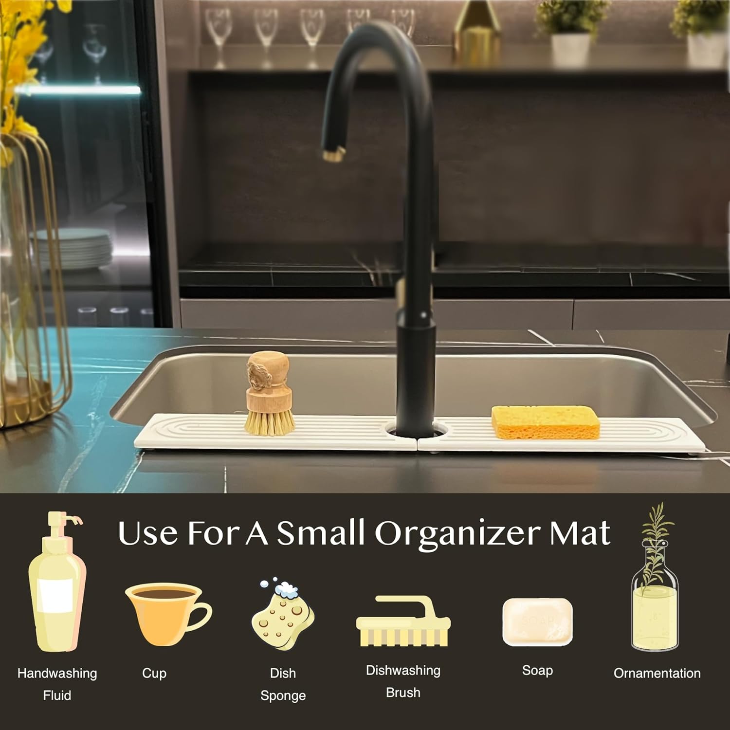 - Modern & Stylish: Designed for the modern home, our stone drying tray combines aesthetics and functionality to impress guests and keep your sink clean. Not just a sink caddy for kitchen counter, but also for bathroom, RV, and bar spigots.