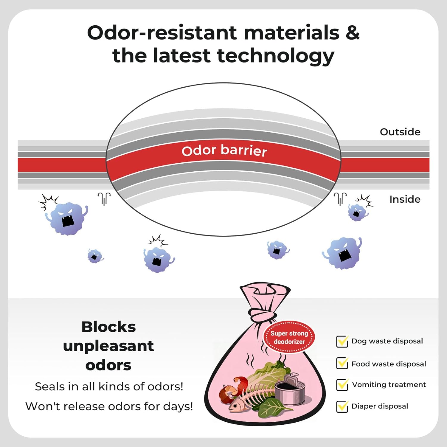 - Odor-Sealing for Fresh Environment: Built with odor-blocking technology that locks in smells and messes—perfect for disposing of kitchen waste. Strong enough to hold trash for 2–5 days without odors, so you don’t have to take it out every day