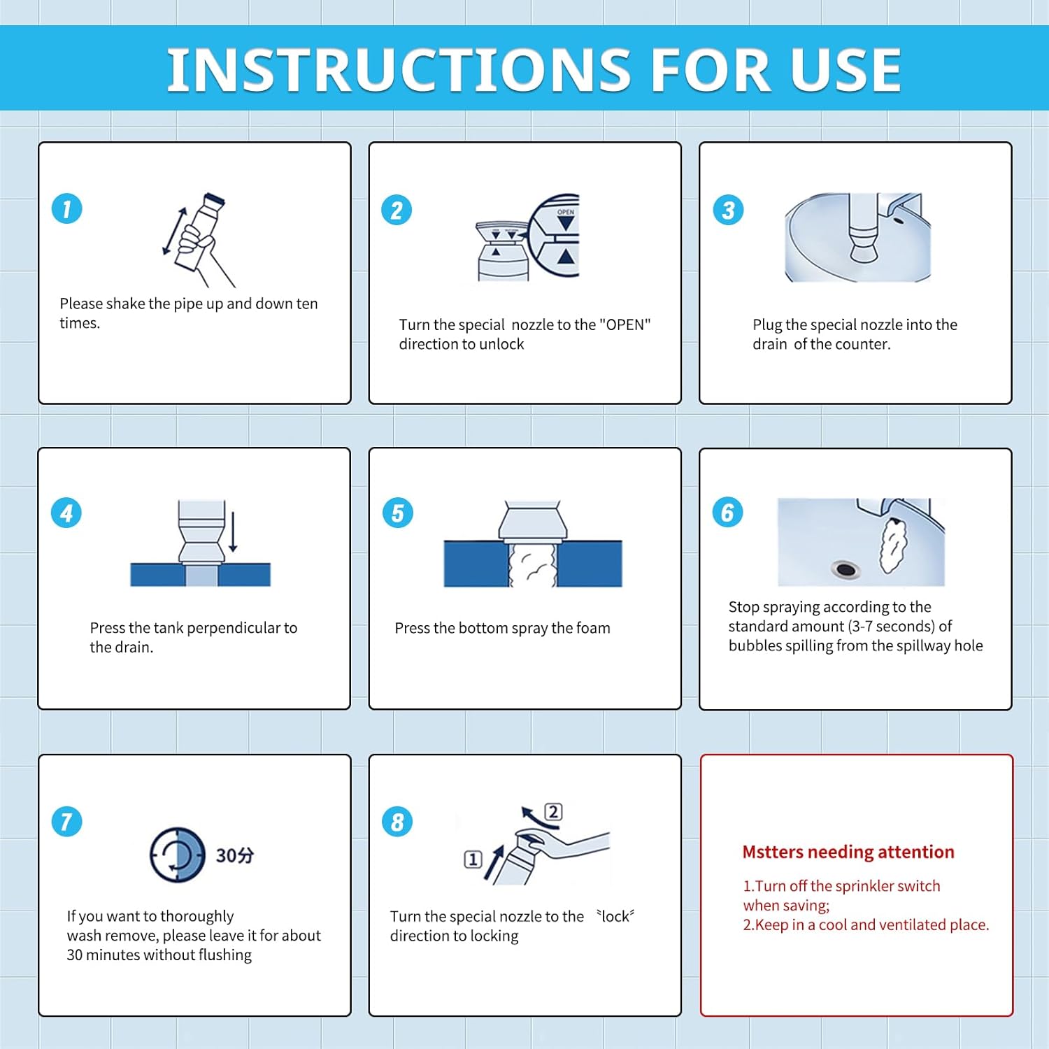 - [Safety Materials] - The Foaming Drain Cleaner is crafted from a gentle formula that poses no harm to pipelines. This foaming drain cleaner is safe for all types of pipes and plumbing. It cleans effectively without causing damage, perfect for bathroom sinks, kitchen sinks, and bathtubs.