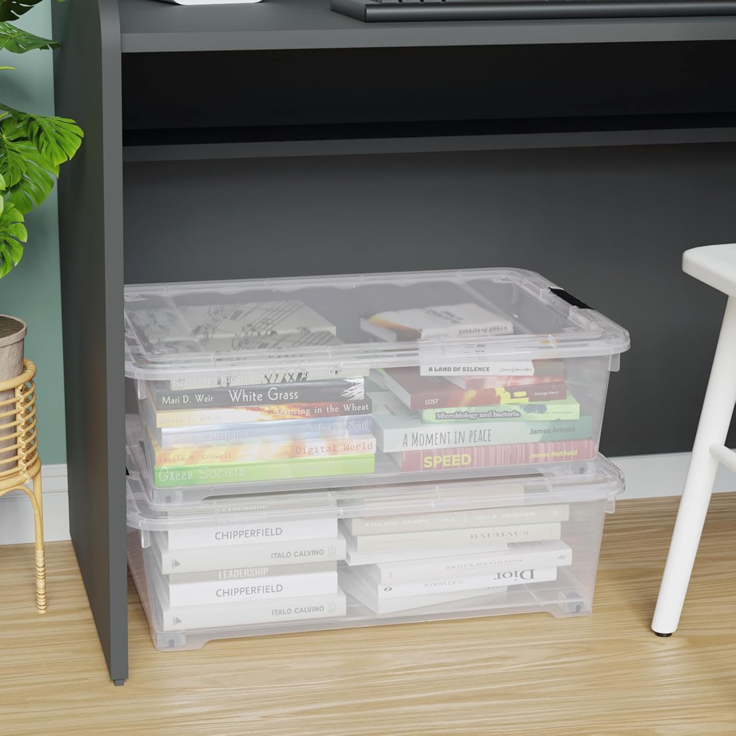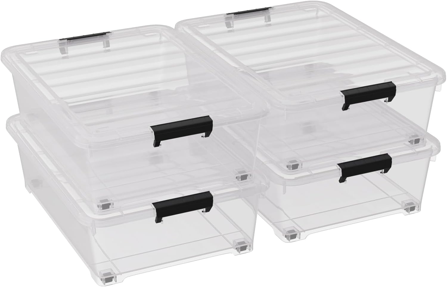 25 Quart Under Bed Clear Latch Bin with Wheel, Plastic Under Bed Storage Box, 4 Pack